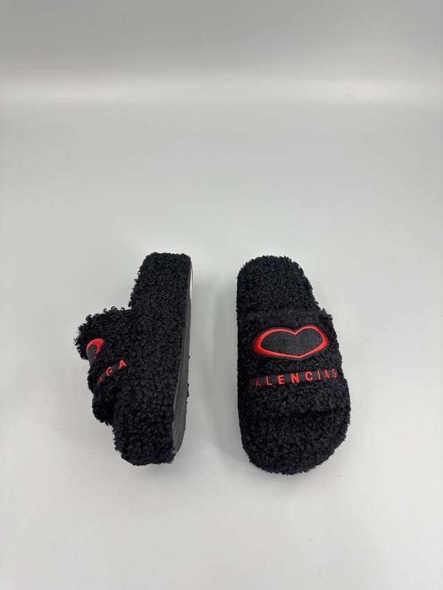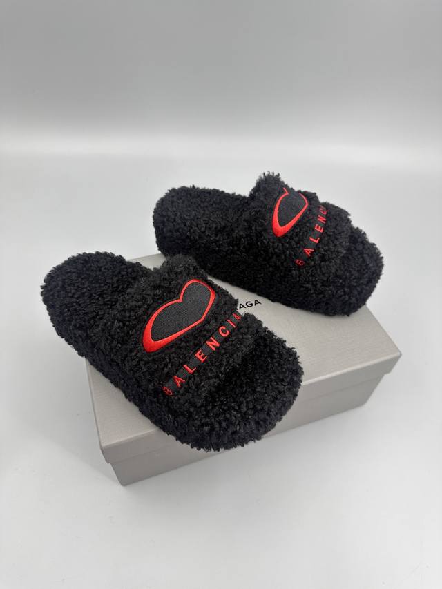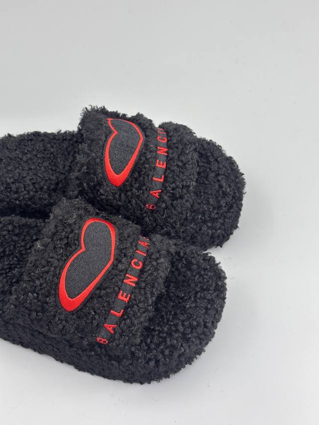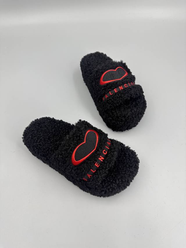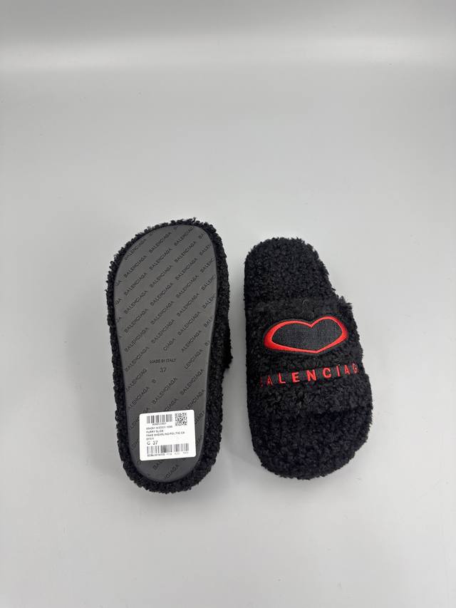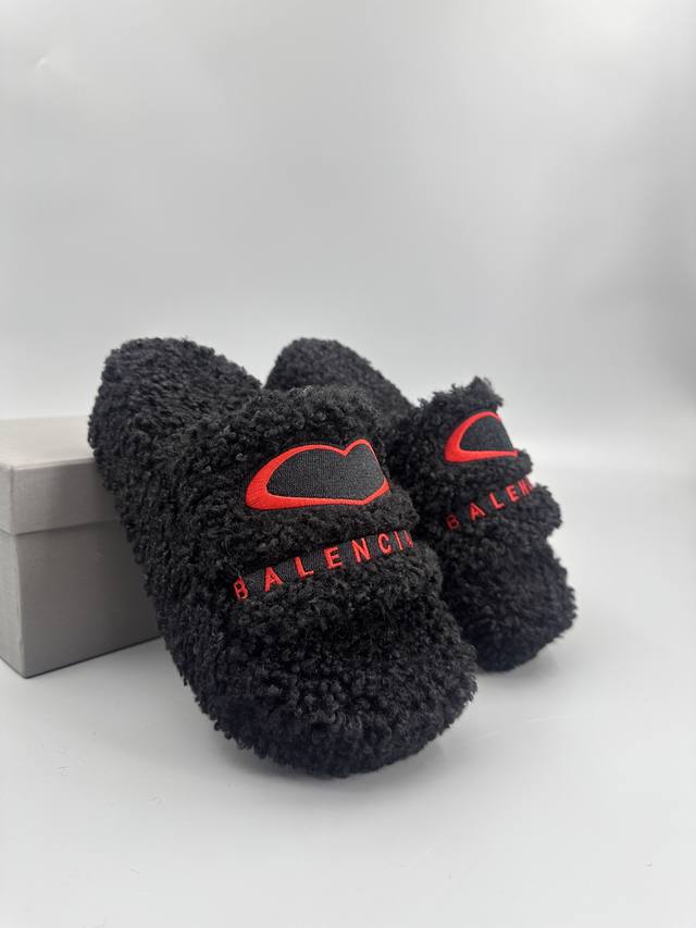 / Balenciaga 巴黎世家25Ss 秋冬潮品 毛拖 鞋面字母图案、电绣徽标刺绣工艺!高级感满满当当!上脚特别漂亮 面料:羊卷毛 非常柔软舒适 鞋底:原版防滑