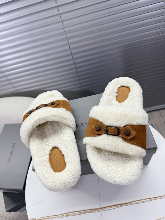 / Balenciaga 羊毛拖鞋,超级火的一款毛毛拖鞋,毛鞋 纯羊毛被植入品牌元素后,百搭、时尚、潮款、懒人至爱,被完美释放 面料 内里 垫脚包底全都是真羊毛 皮