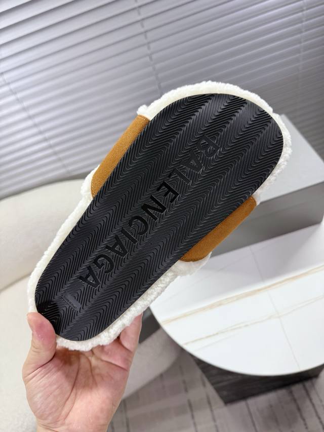 Balenciaga 羊毛拖鞋,超级火的一款毛毛拖鞋,毛鞋 纯羊毛被植入品牌元素后,百搭、时尚、潮款、懒人至爱,被完美释放 面料 内里 垫脚包底全都是真羊毛 皮