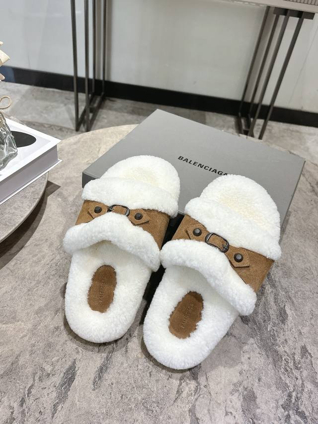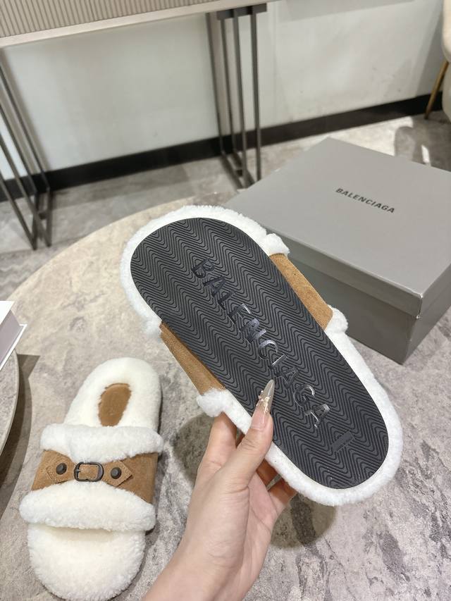 Balenciaga 25秋冬 新款毛毛拖 秋冬潮品巴黎世家毛拖 ! 高级感满满当当V欧美名媛 明星 网红Girl 大爱款 精致鞋面缝纫走线 蓬松柔软 亲肤柔软冬季必备款 时尚却不过分张扬 面料:牛反绒羊毛 鞋底:原版橡胶防滑耐磨底 Size:35-39 40订做不退换