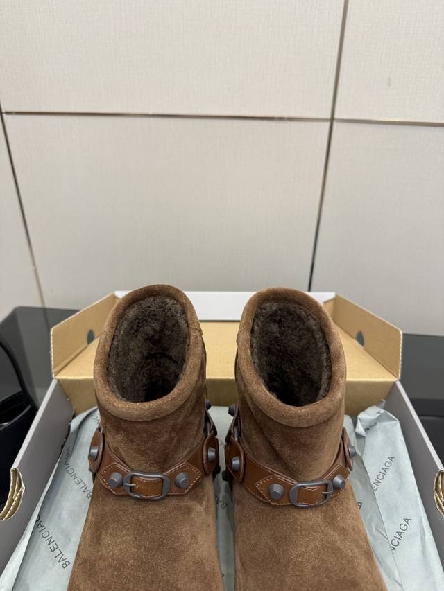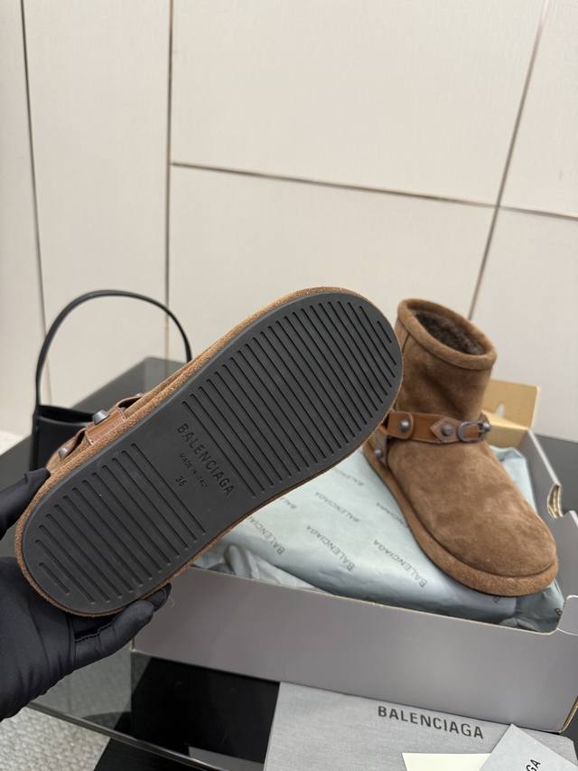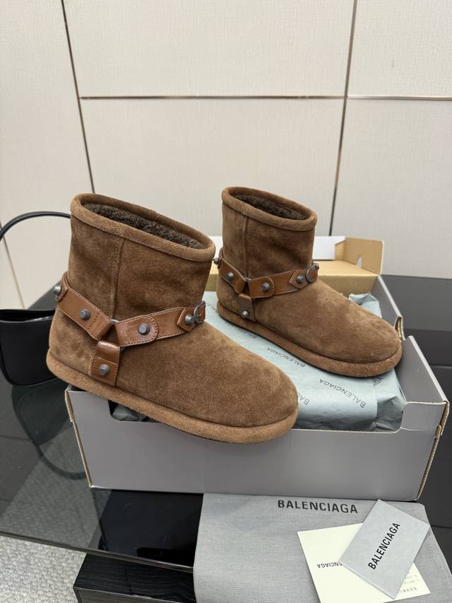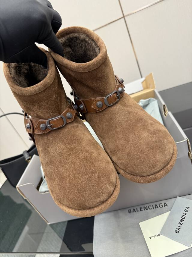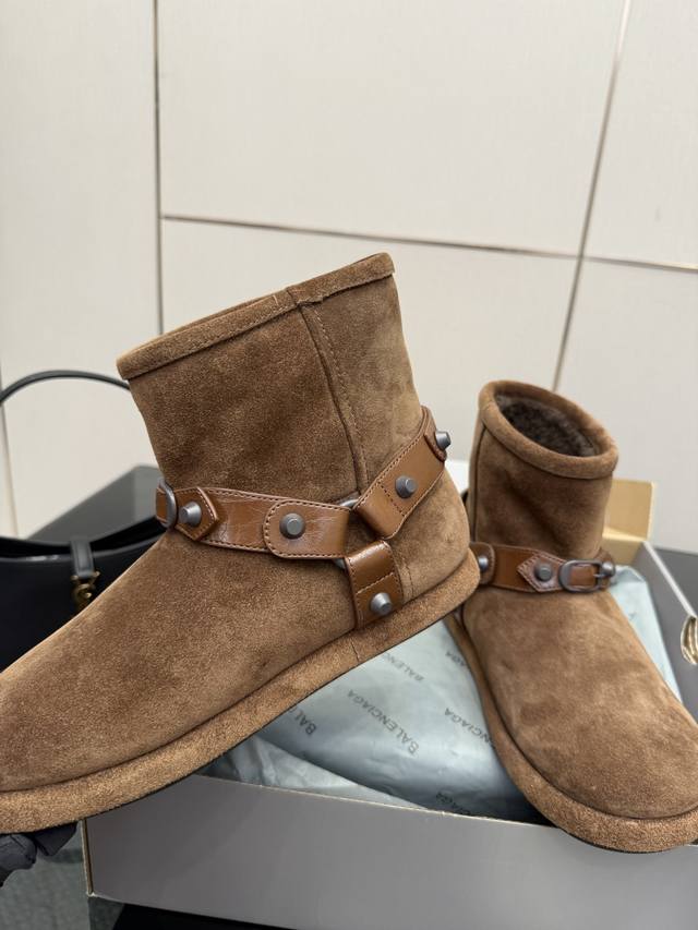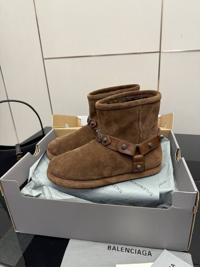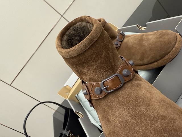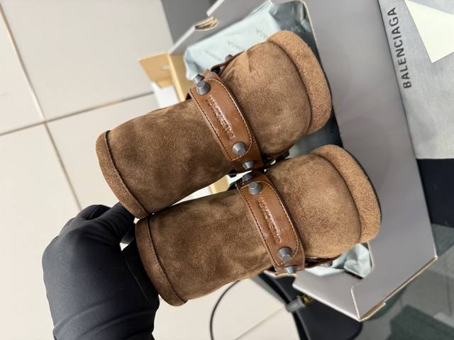 / Balenciaga2025秋冬新款皮带扣铆钉雪地靴 简直不要太帅 设计感满满打破传统雪地靴的沉闷臃肿 个性十足 鞋面采用丝光牛反绒面料 细腻高级感拉满 整个内