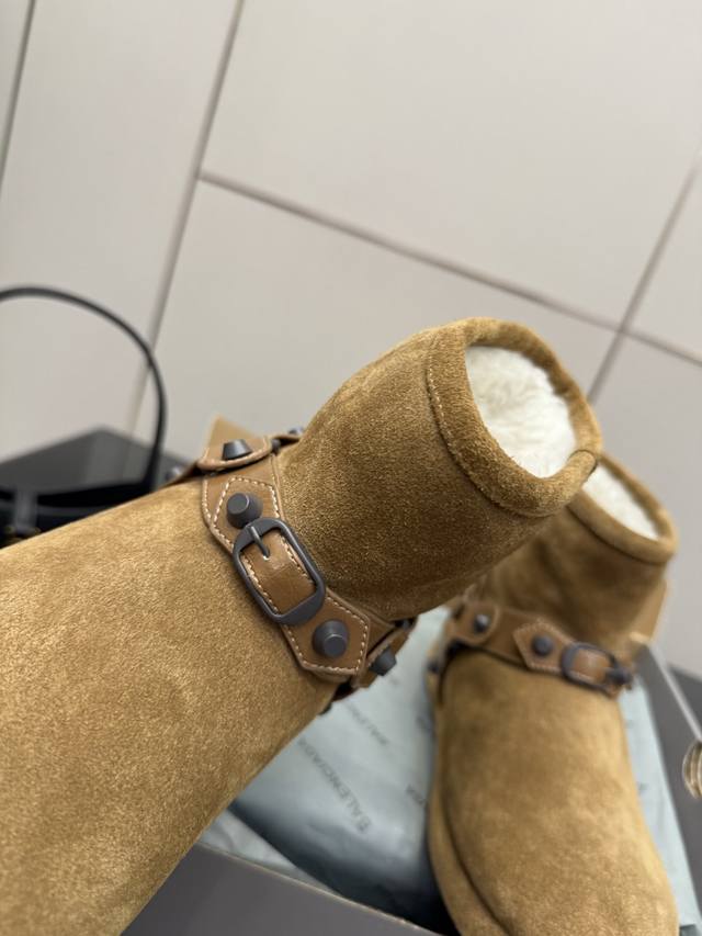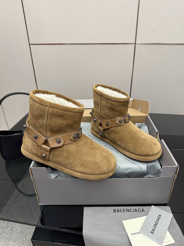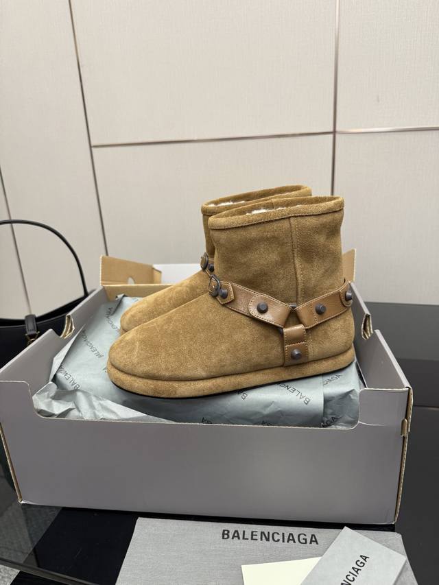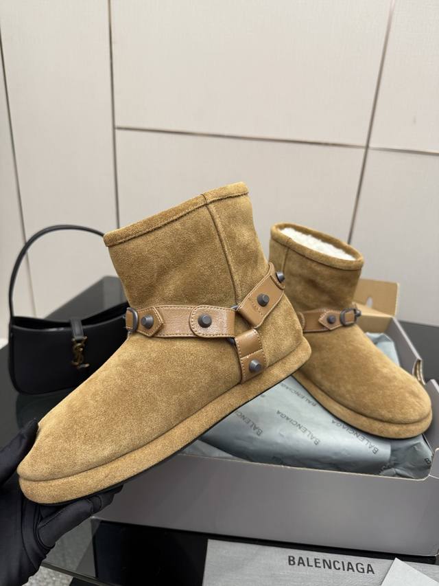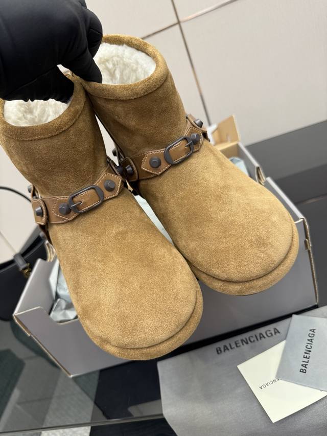 / Balenciaga2025秋冬新款皮带扣铆钉雪地靴 简直不要太帅 设计感满满打破传统雪地靴的沉闷臃肿 个性十足 鞋面采用丝光牛反绒面料 细腻高级感拉满 整个内