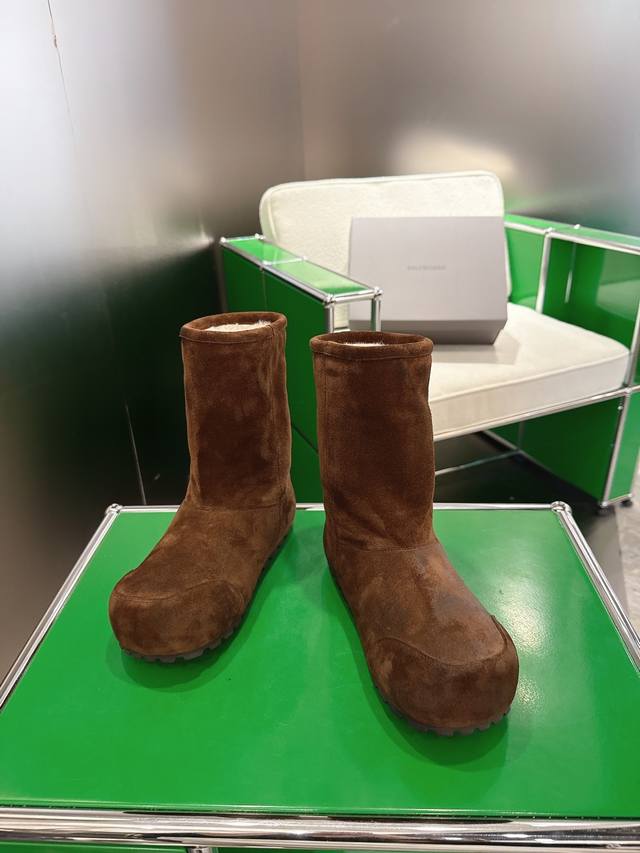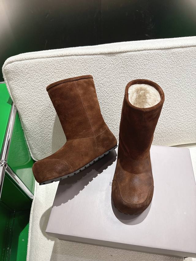 K018 Balenciaga 巴黎世家 2025秋冬新款中筒纯羊毛雪地靴 简直不要太帅 设计感满满打破传统雪地靴的沉闷臃肿 个性十足 秋冬搭配小卫裤 牛仔裤