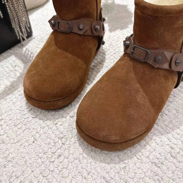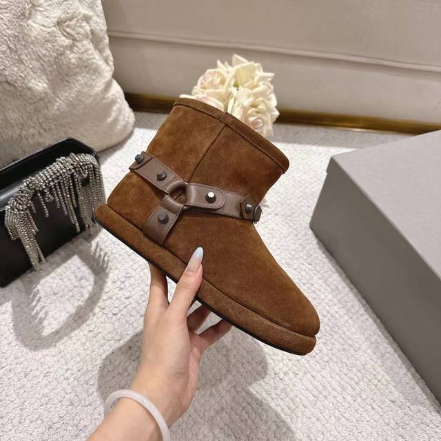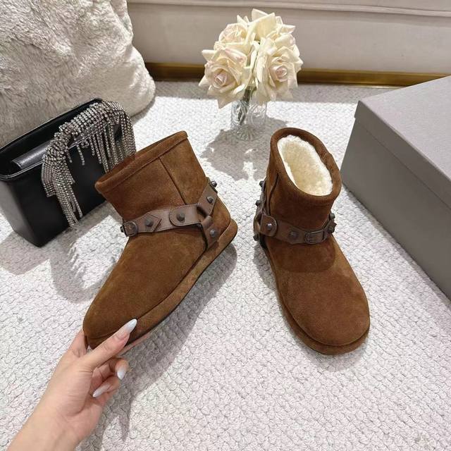 女款 Balenciaga*巴黎世家F022 2025Ss秋冬新款羊毛短靴雪地靴 冬日凛凛不可缺之一,闭眼入都是不会后悔 上脚非常舒服超舒服 Zp订制面料 鞋面