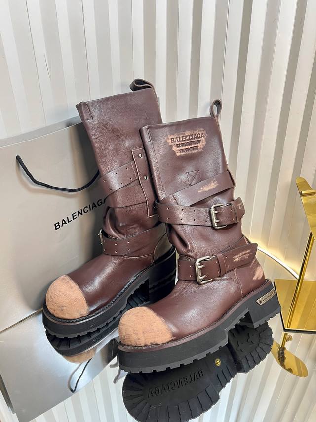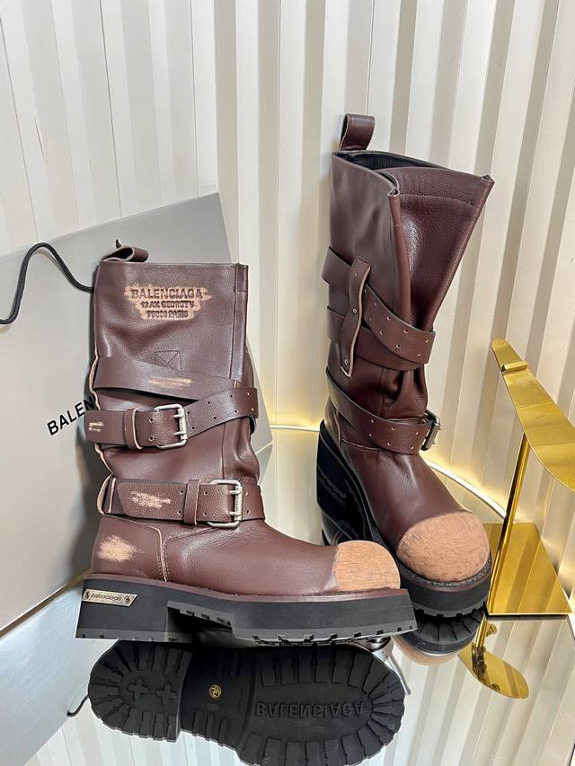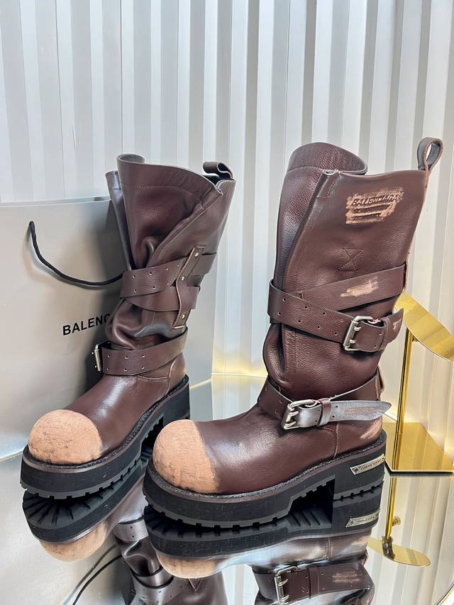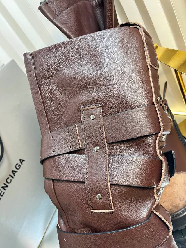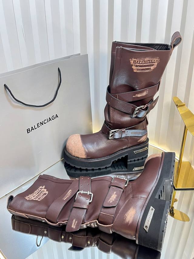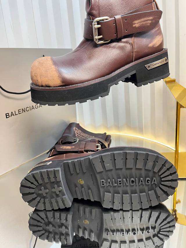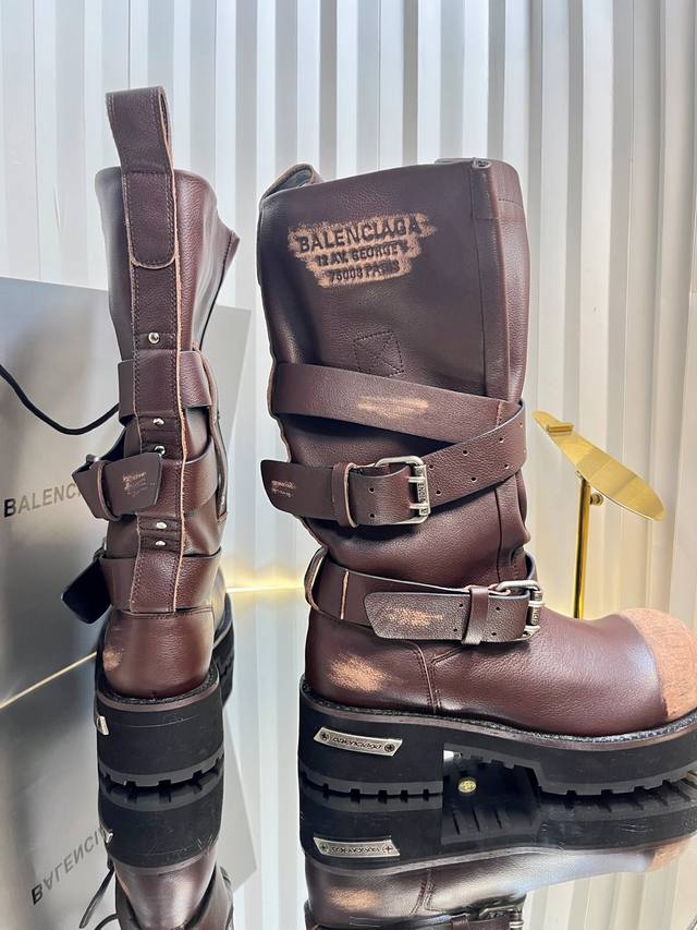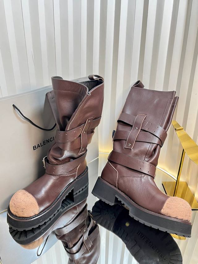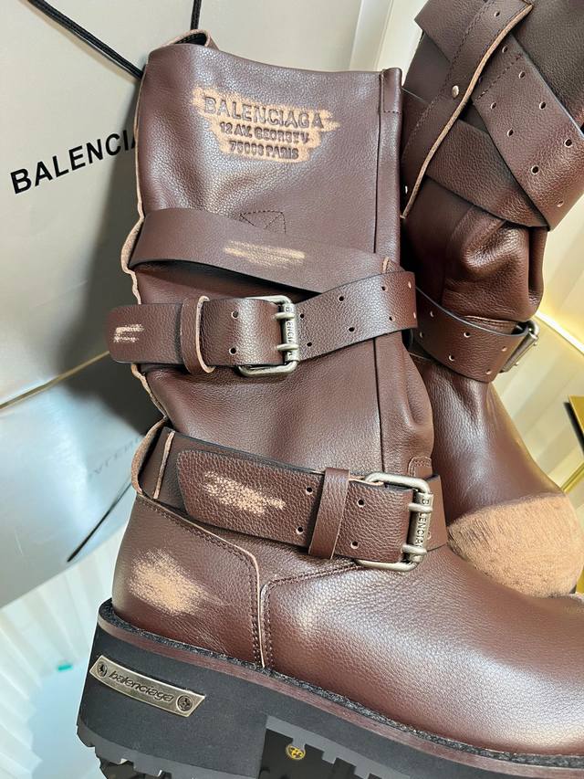 女 男720巴黎世家25Fall Pre-Order New Balenciaga Fw25 Venom Boots By Balenciaga 顶级版 25年最酷的毒液靴来咯! 暗黑机能风!出门炸街气场爆表 原厂数据-原版1:1还原细节 毒液靴的设计极具辨识度,利落的线条搭配金属扣饰,每一处细节都彰显着Balenciaga的前卫态度。皮革质感上乘,光泽内敛却又奢华尽显,脚感更是舒适与格调并存。 无论是搭配修身牛仔裤展现街头酷感,还是与个性裙装碰撞出别样火花,它都能轻松Hold住。穿上它,你就是街头最吸睛