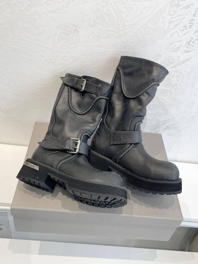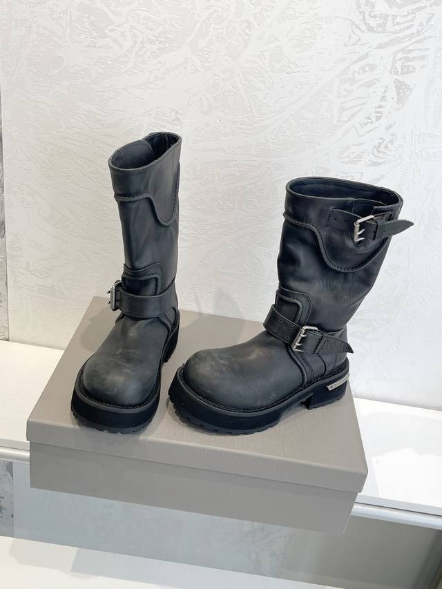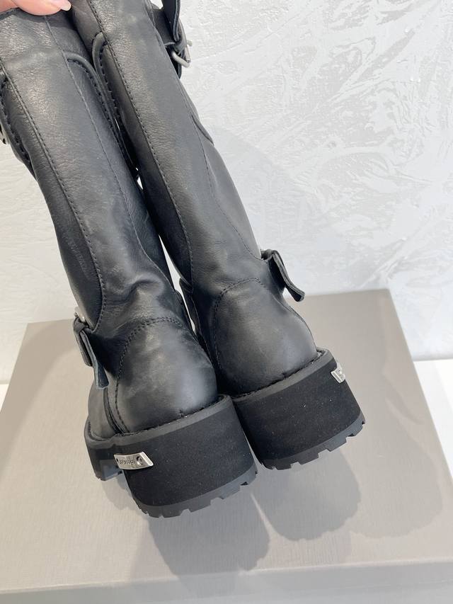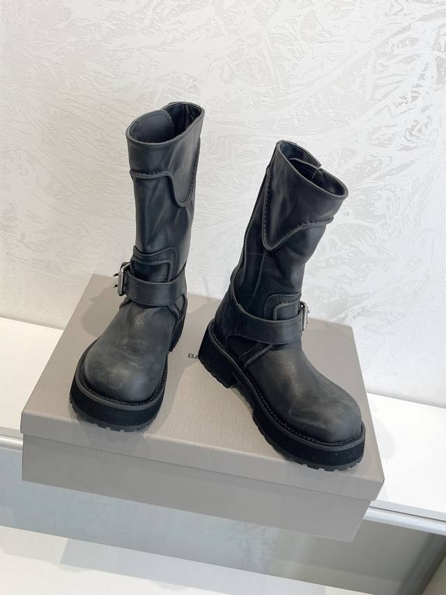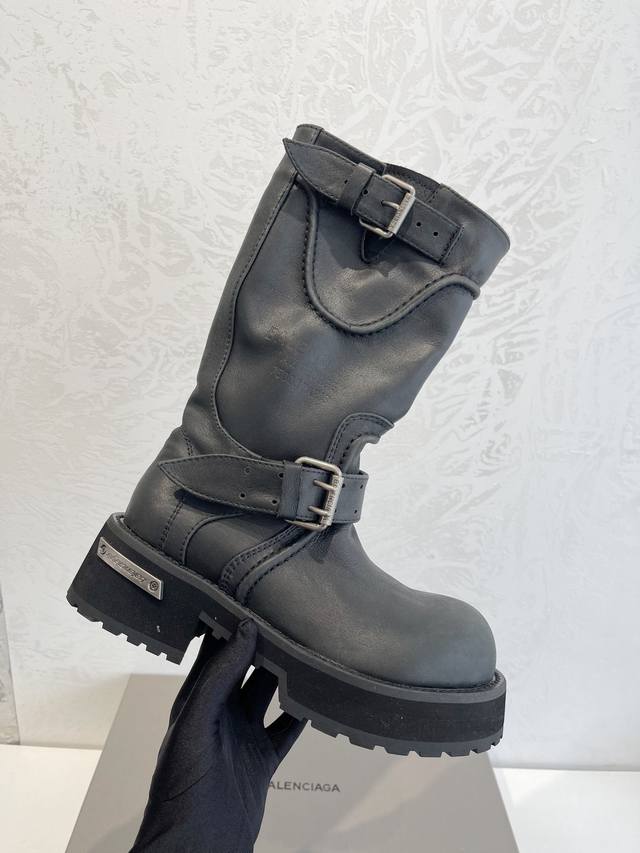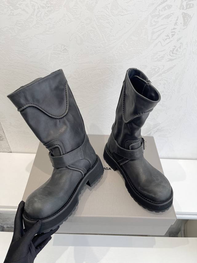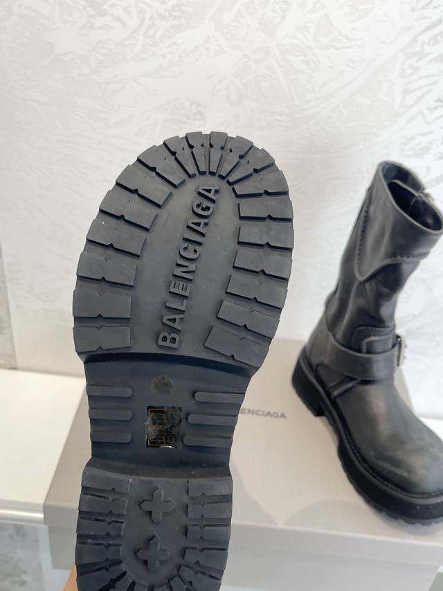 工厂P直销 Balenciaga巴黎世家25Fw毒液Venom中筒靴 这款靴子在设计上独具匠心 以绑带与皮带元素作为亮点 不仅能将靴子稳固贴合于足部 更可随心调节松紧 在细节处理上 品牌标志性的做旧五金件贯穿始终 巧妙营造出复古磨损效果,彰显个性态度搭配厚实的齿状橡胶鞋底 既保证了穿着的舒适度,又强化了整体的时尚感与辦识度Venom中筒靴无疑是本季不容错过的时尚单品,它将为时尚爱好者们的穿搭增添别样魅力,引领新一轮的潮流风尚 鞋面:头层牛皮做旧处理 内里:进口水染牛皮 大底:原版开模真皮沿条组合大底厚度5