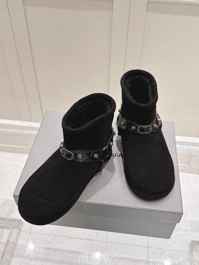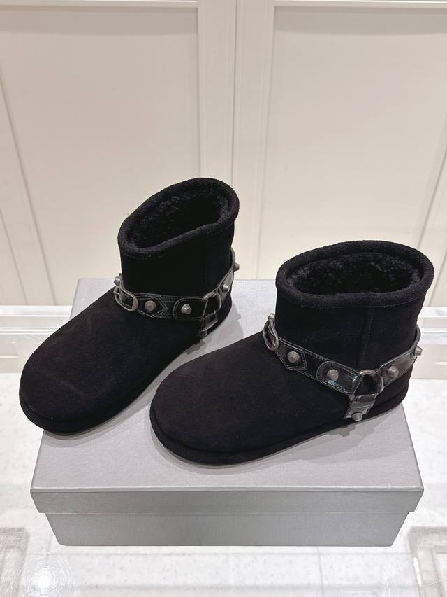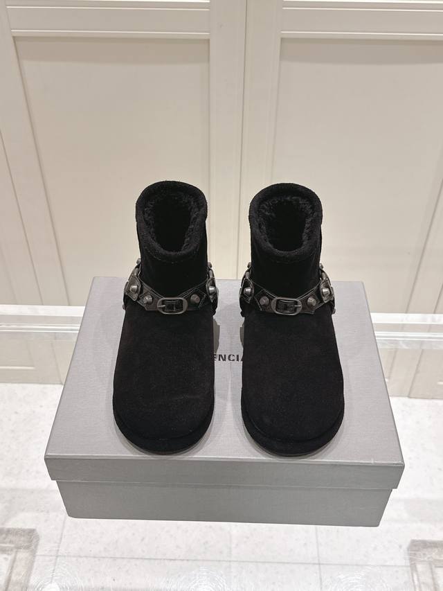 巴黎世家 Balenciaga 2025秋冬新款皮带扣铆钉雪地靴,一眼沦陷的率性美学 打破传统雪地靴的沉闷印象,利落廓形丝毫不显臃肿,铆钉与皮带扣点缀出高级街头