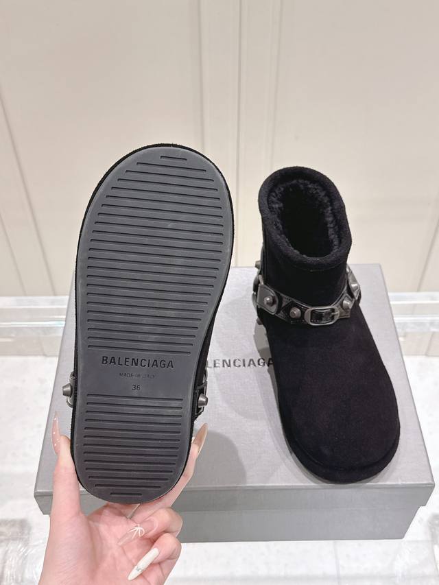 / 巴黎世家 Balenciaga 2025秋冬新款皮带扣铆钉雪地靴,一眼沦陷的率性美学 打破传统雪地靴的沉闷印象,利落廓形丝毫不显臃肿,铆钉与皮带扣点缀出高级街头