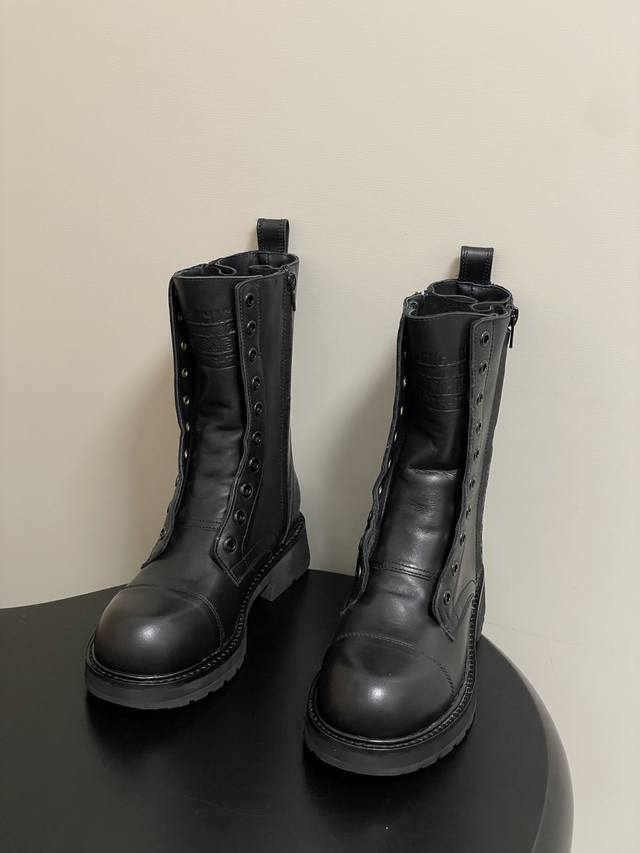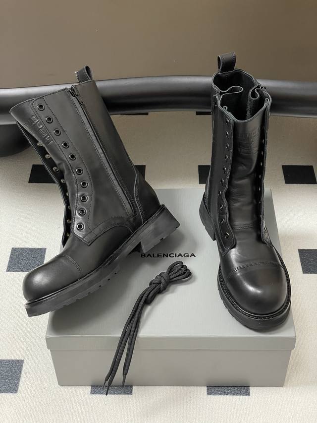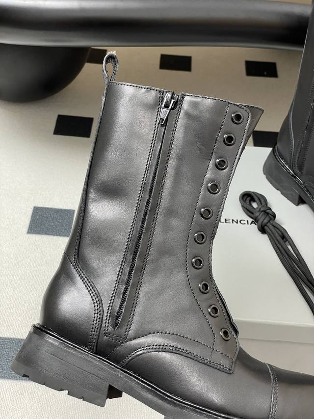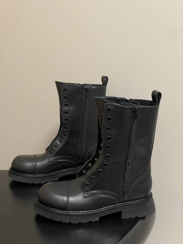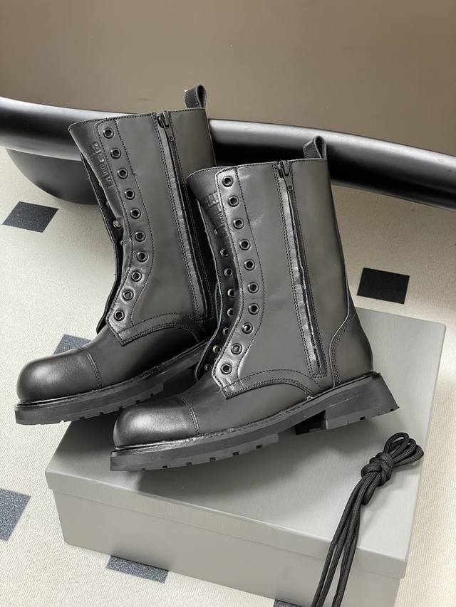 男10 25秋冬新款Balenciga巴黎世家 25Fw情侣款厚底乐福鞋机车朋克风马丁靴 侧拉链短靴 暗黑机能风!出门炸街气场爆表 液靴的设计极具辨识度,利落的线条搭配金属扣饰,每一处细节都彰显着的前卫态度。皮革质感上乘,光泽内敛却又奢华尽显,脚感更是舒适与格调并存。 无论是搭配修身牛仔裤展现街头酷感,还是与个性裙装碰撞出别样火花,它都能轻松Hold住。穿上它,你就是街头最吸睛的存在,将时尚态度完美诠释 鞋面:定制牛皮 高丝光牛反绒 内里垫脚:羊皮 鞋底:3层组合-真皮沿条回弹耐磨绒轮胎橡胶大底 跟高:4