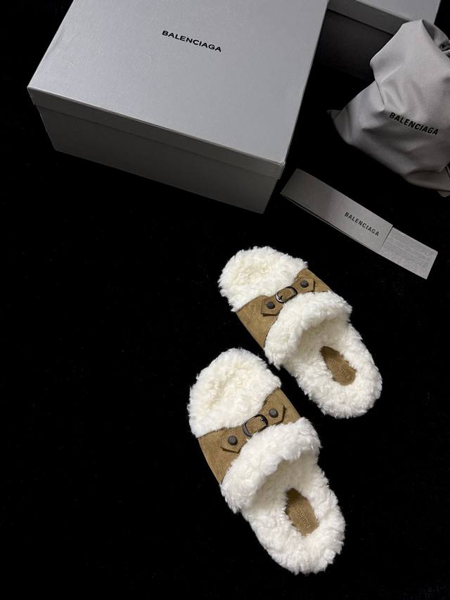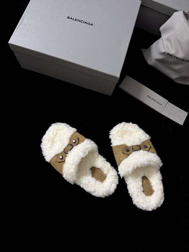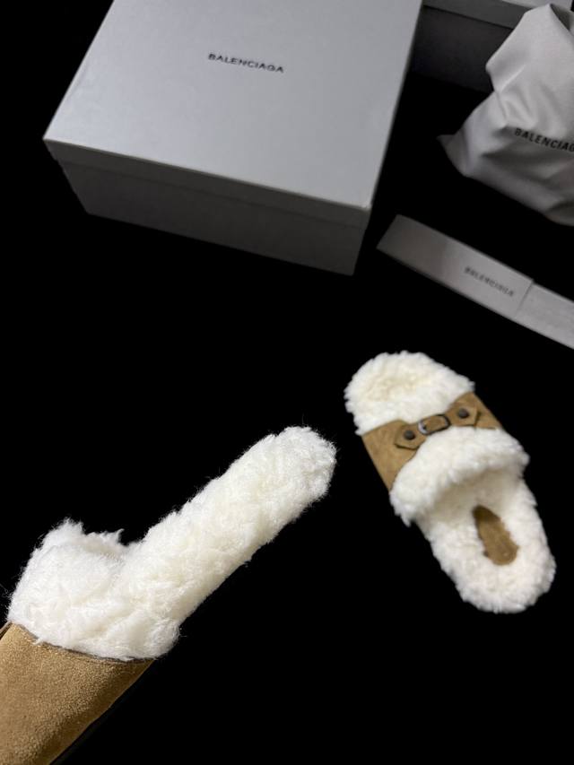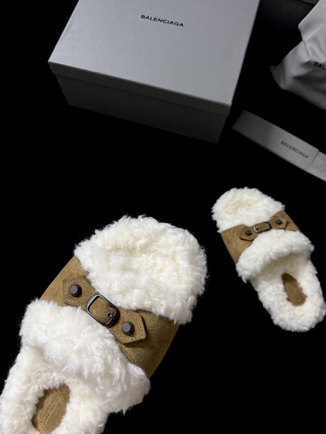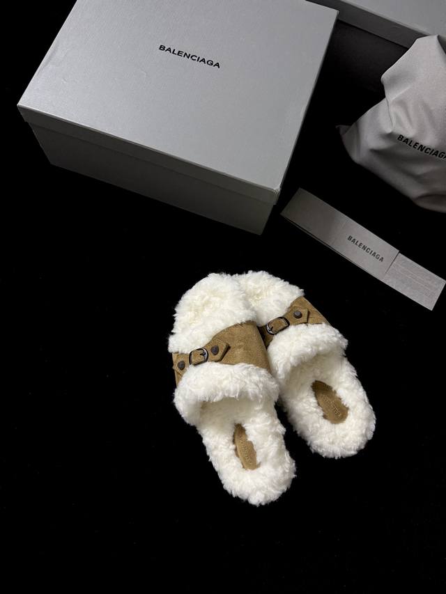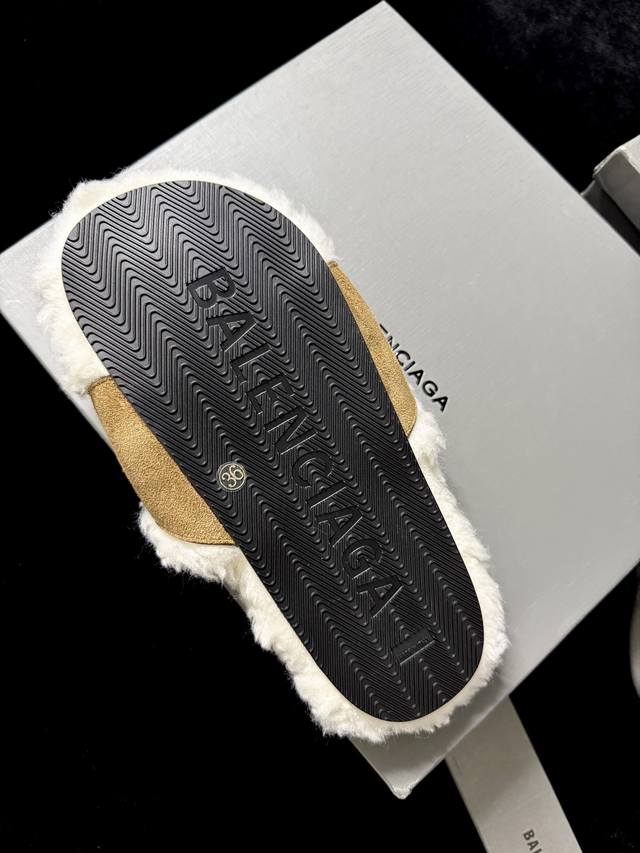 Balenciag* 新品 这款毛毛拖 时髦精闭眼冲 蓬松毛绒自带慵懒高级感 搭上皮质扣带 酷与柔完美碰撞 踩上脚 既是舒适小窝 又是吸睛利器 出街随性一穿 时尚感直接拉满~ 鞋面进口麂皮 内里进口羊毛 Zp开模大底 35-39 40.41.42定