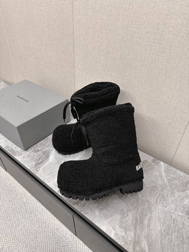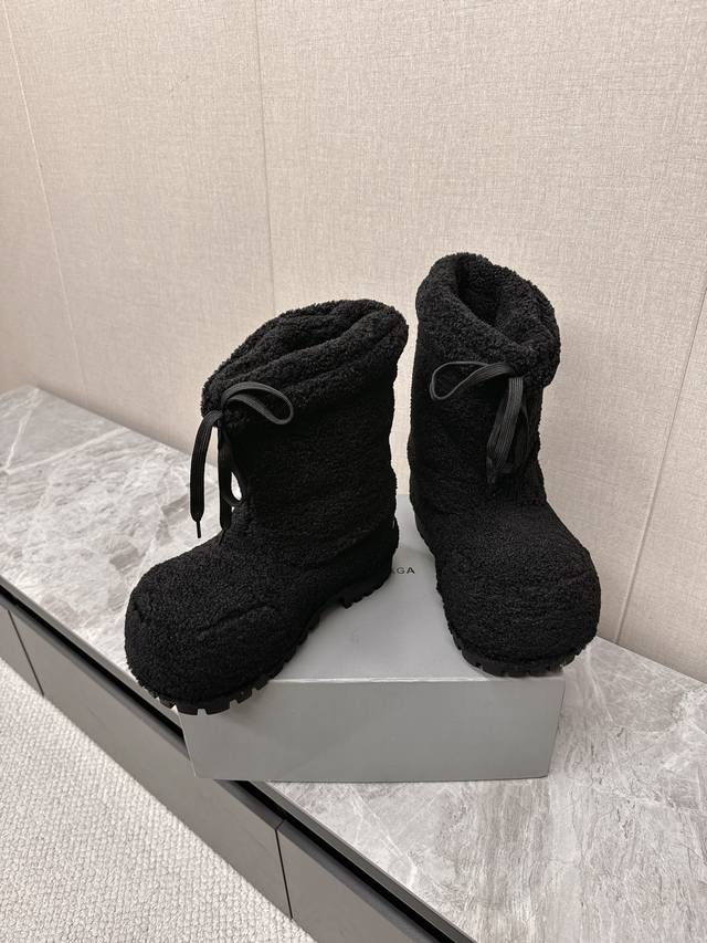 Balenciaga巴黎世家滑雪系列Skiwear最新款情侣阿拉斯加雪地靴 正品Rmb12510购入开发 完美复刻 设计师推出探索时尚界对于原创与挪用的概念、以全新系列致敬传承与经典,以标志性Balenciaga抽象打破常规设计 碰撞出诙谐又和谐的新创意、原版一比一做法、面料全部定羊羔真毛 双层鞋面里外一层独家开模大底 正品全套包装、码数:女35-40男39-46 DDD