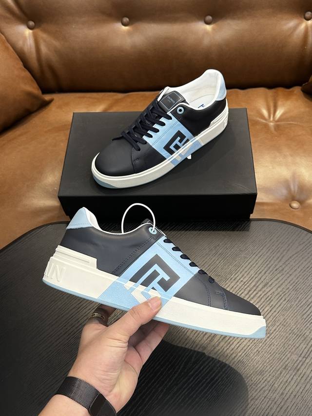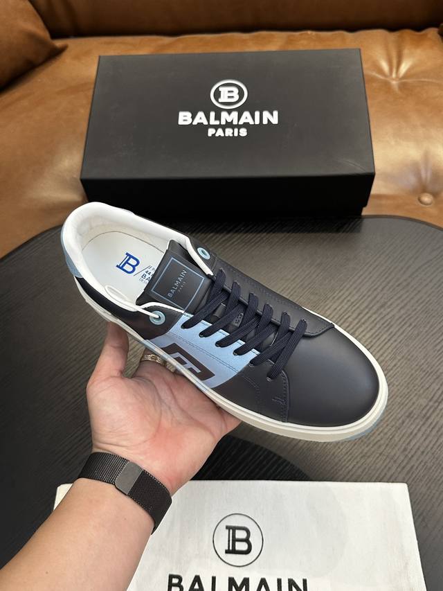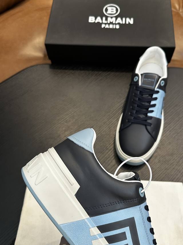 Balmain巴尔曼B-Skate运动鞋 DDD B-Skate 多材质拼接撞色运动鞋 ,鞋面饰有黑色鞋带,皮革拼接鞋舌点缀 Balmain 徽标, Tpu 鞋底饰有同色系 Balmain 徽标。 DDD 码数:38-45 DDD