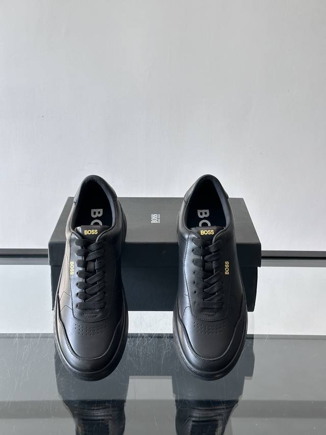 Boss休闲板鞋,真皮反绒皮拼接,质感细腻又耐用!橡胶鞋底防滑耐磨,日常穿搭超安心。简约设计+经典小白鞋配色,百搭牛仔裤、运动裤都Ok,通勤休闲都能Hold住。鞋内衬柔软,穿着舒适,鞋底微增高,修饰腿型又不影响行走。实用又时髦,是衣橱必备单品! DDD Size:38-120 DDD