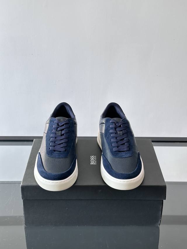 Boss休闲板鞋,真皮反绒皮拼接,质感细腻又耐用!橡胶鞋底防滑耐磨,日常穿搭超安心。简约设计+经典小白鞋配色,百搭牛仔裤、运动裤都Ok,通勤休闲都能Hold住。鞋内衬柔软,穿着舒适,鞋底微增高,修饰腿型又不影响行走。实用又时髦,是衣橱必备单品! DDD Size:38-120 DDD
