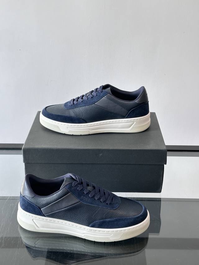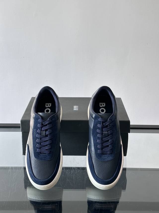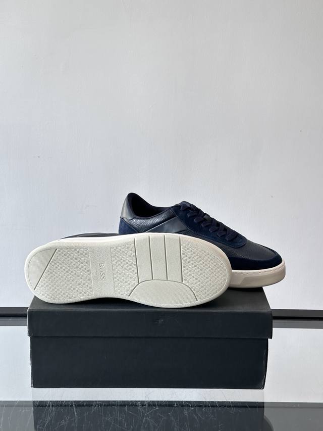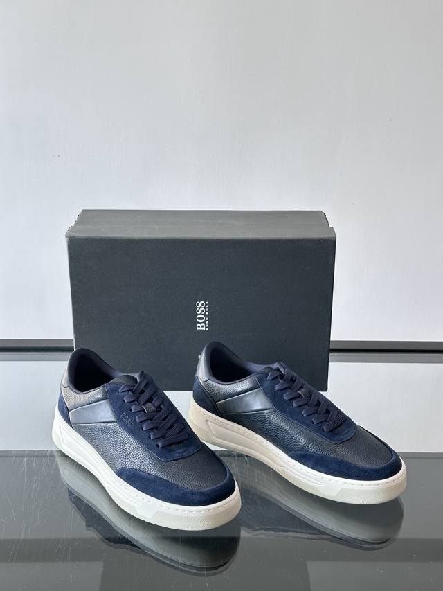 / Boss休闲板鞋,真皮反绒皮拼接,质感细腻又耐用!橡胶鞋底防滑耐磨,日常穿搭超安心。简约设计+经典小白鞋配色,百搭牛仔裤、运动裤都Ok,通勤休闲都能Hold住。