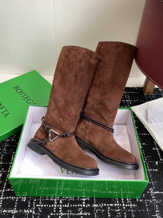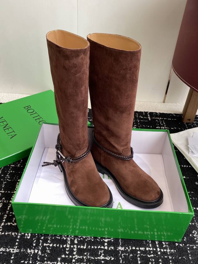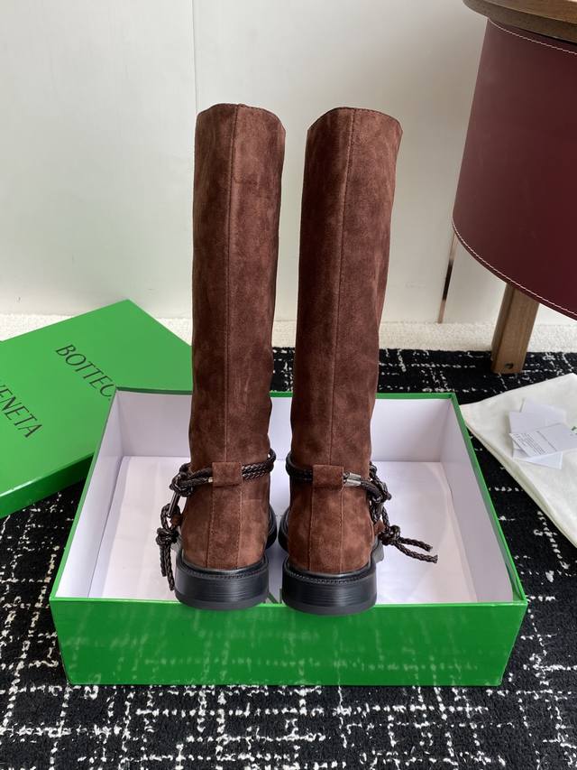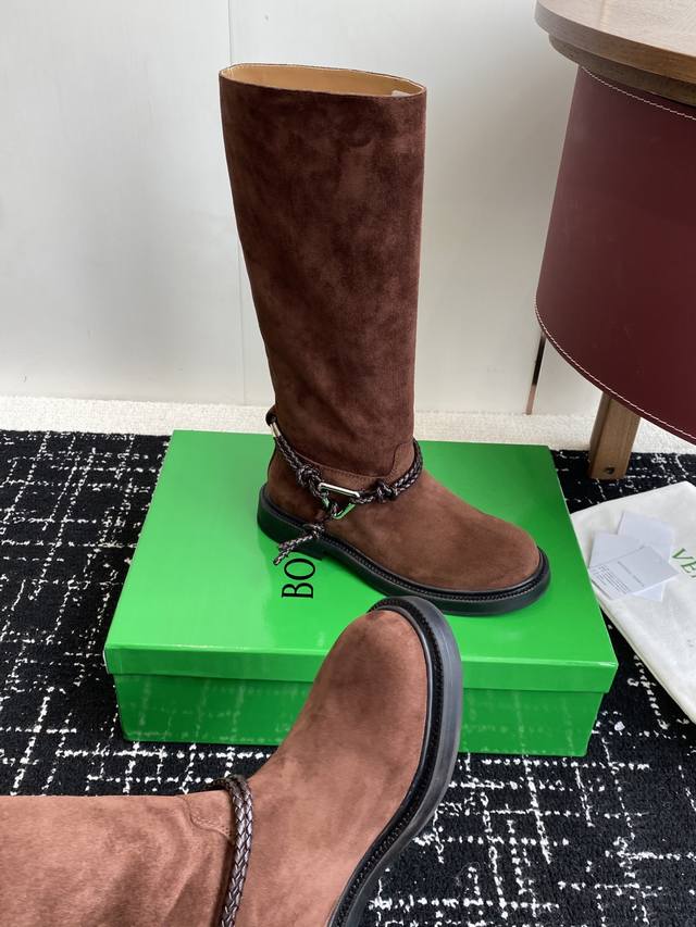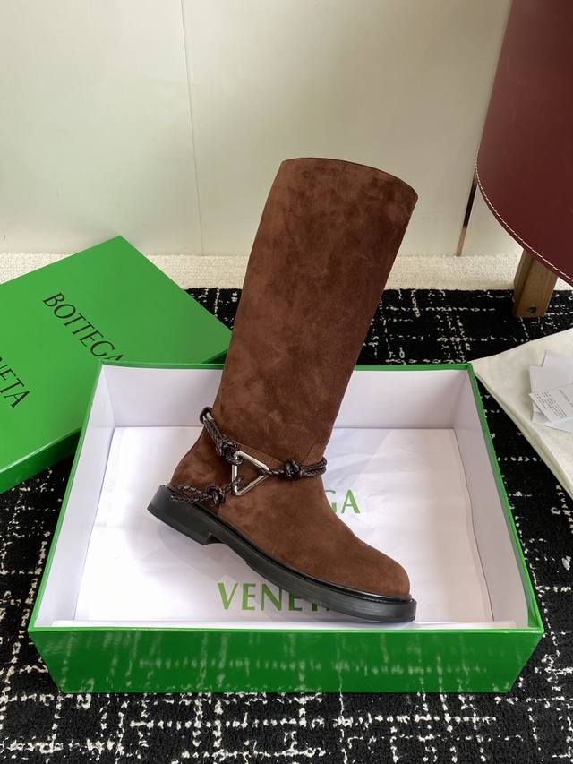代购级短靴430高靴 DDD Bottega Veneta Bv一脚蹬时尚 短靴 骑士靴 DDD 太酷了 一眼就爱上,这双绳结靴必须锁死 DDD 经典绳结编织缠绕靴身,搭配标志性三角金属扣,黑银碰撞自带酷飒滤镜,穿上直接化身街头拽姐,气场两米八 DDD 靴型超显腿长,不管是配拖地牛仔裤走随性松弛感,还是搭迷你裙玩辣妹风,甚至配西装裤走职场精英路线,都能完美适配,秋冬穿搭“万能钥匙”就是它 纠结秋冬靴子的姐妹,闭眼冲! DDD 鞋面:进口麂皮 内里Bv传统深咖色牛皮里、 DDD 橡胶大底组合 DDD Siz