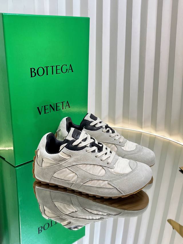 bv 90年代复古风格为灵感 鞋面选用麂皮+防水布面料 呼应品牌标志性Intrecciato编织元素 展现出精致前卫的设计风格 采用轻质科技面料 绒面革和网布制成 低帮系带的设计 休闲舒适又不乏造型设计的精细雕琢