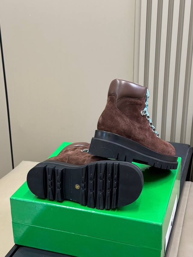 加绒 Bottegaveneta 25秋冬短靴新品 超精致的系带短靴,麂皮材质柔和又不乏精致张力,秋冬氛围感拉满! 毛里搭配的是小牛皮,御寒神器,好看又增高!