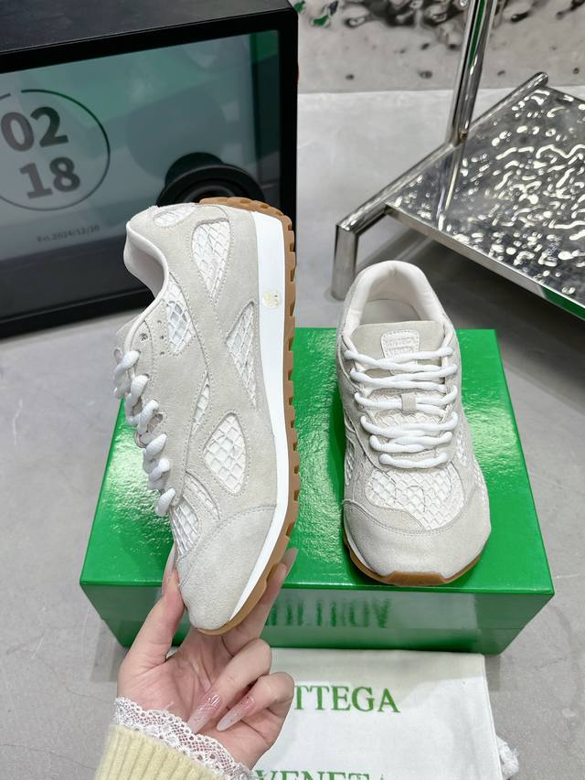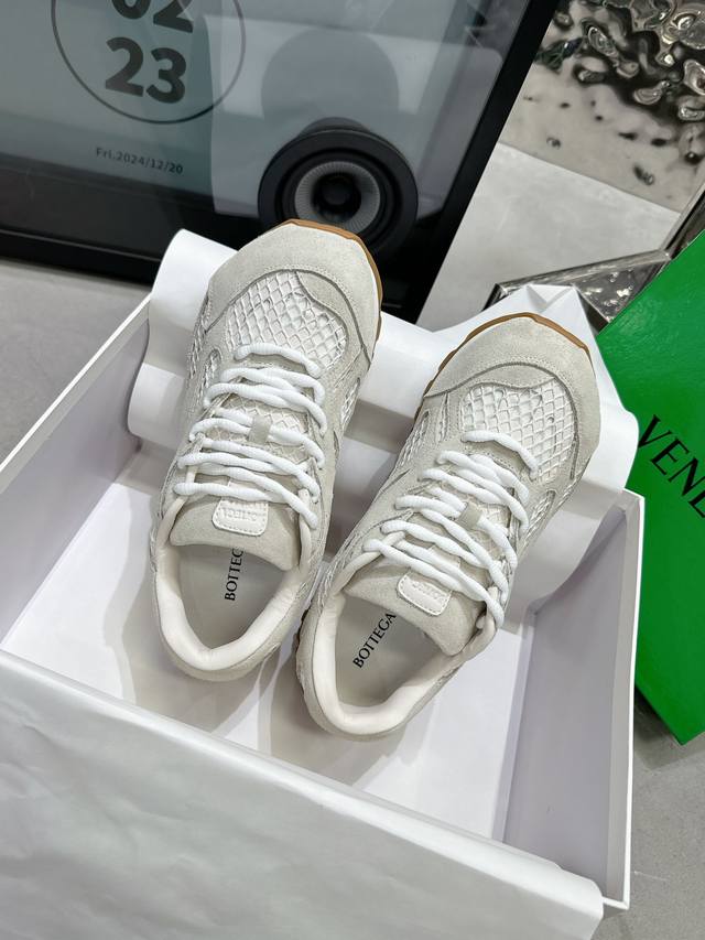 回归千禧年!Bv Orbit 运动鞋真的好帅!Bottega Veneta 以 年代自由随性的复古风格为灵感,推出全新的中性运动鞋 Orbit 系列。Orbit 运动鞋在保证休闲舒适的同时,不乏造型设计的精细雕琢,搭配甄选网纱面料呼应品牌标志性Intreccio 编织元素,以此实现轻盈的脚感。以精致前卫的设计带来全新的演绎,在功能与廓形的碰撞中致敬个性风采、打造永不过时的造型风格。“动态”是Matthieu Blazy 的重要设计理念之一。在穿着舒适的同时,还可以优雅修饰足部线条,更能自由搭配裤装或裙装,