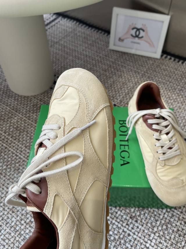 女款 男款 Bottega Veneta 葆蝶家 Bv最新款Orbit系列 复古休闲运动鞋 情侣款 Bottega Veneta 以 90年代自由随性的复古风格为灵感,推出全新的中性运动鞋 Orbit 系列 在保证休闲舒适的同时 不乏造型设计的精细雕琢 搭配甄选太空布面料呼应品牌标志性Intreccio 元素 以此实现轻盈的脚感 以精致前卫的设计带来全新的演绎,在功能与廓形的碰撞中致敬个性风采、打造永不过时的造型风格 动态”是Matthieu Blazy 的重要设计理念之一 在穿着舒适的同时,还可以优雅修