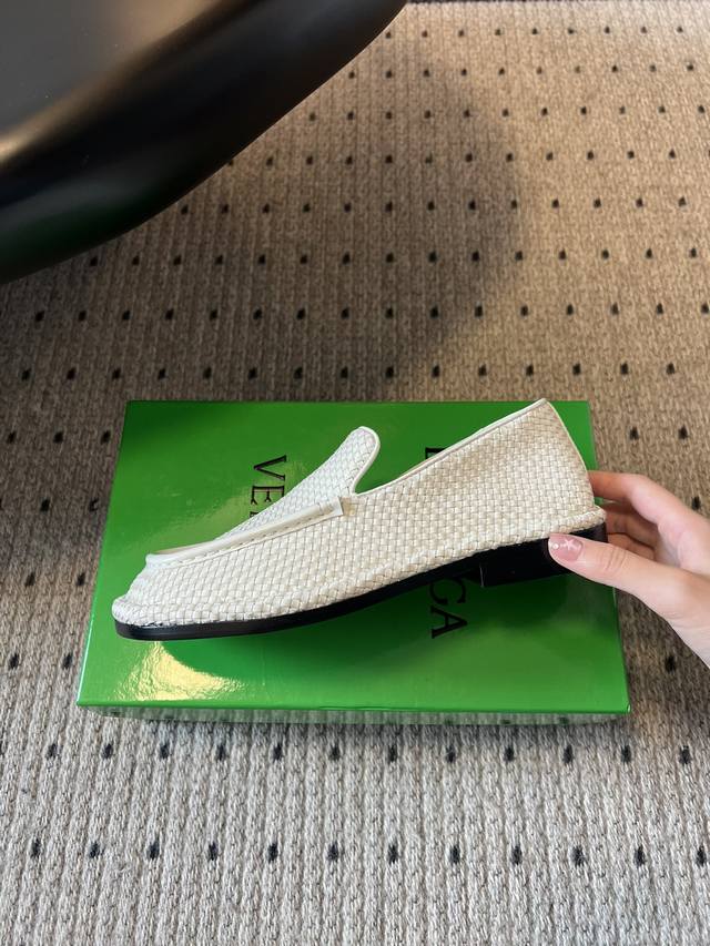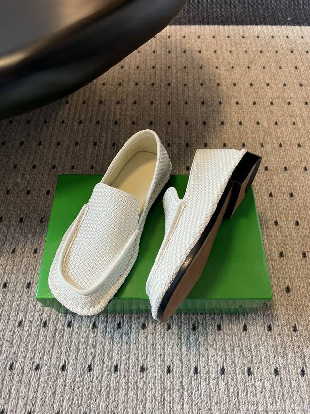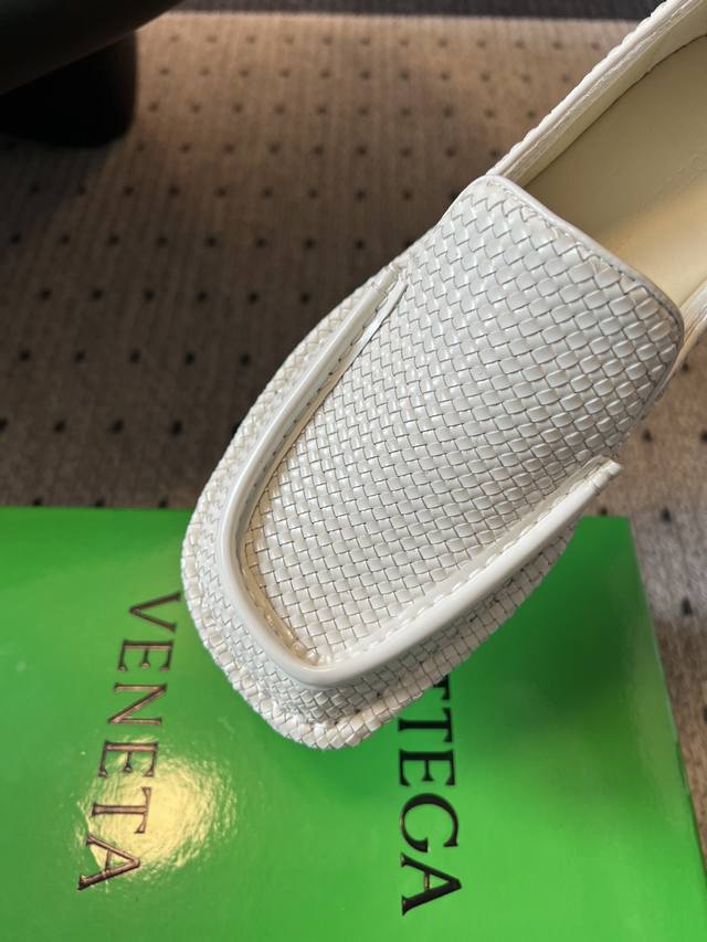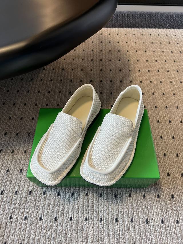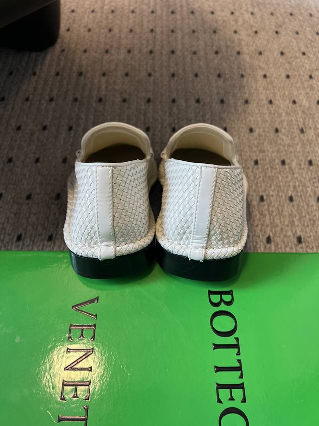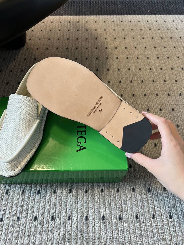 女码470男码 Bottega Venet* 25Ss新款编织乐福鞋 区别于传统乐福鞋的刻板,Bv的Daddy 系列以微阔鞋楦设计,既保留复古绅士的优雅线条,又注入现代松弛感。小牛皮材质,在光线折射下呈现深浅交织的纹理,犹如焦糖缓缓流动的质感比咖啡更暖,比驼色更醇。 这双鞋的内里是小羊皮的,穿起来非常软非常舒服,而且不闷脚,长时间暴走舒适度可以;除了正常的穿法外,因为它的鞋跟处没有支撑,所以可以踩跟穿,跟现在时下热门的皮鞋半拖,穆勒鞋这些风格也完美适配,夏天配短裤非常有松弛感,完全不会油腻。 鞋面:牛皮