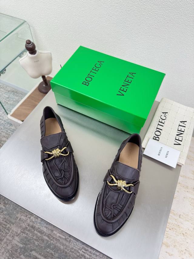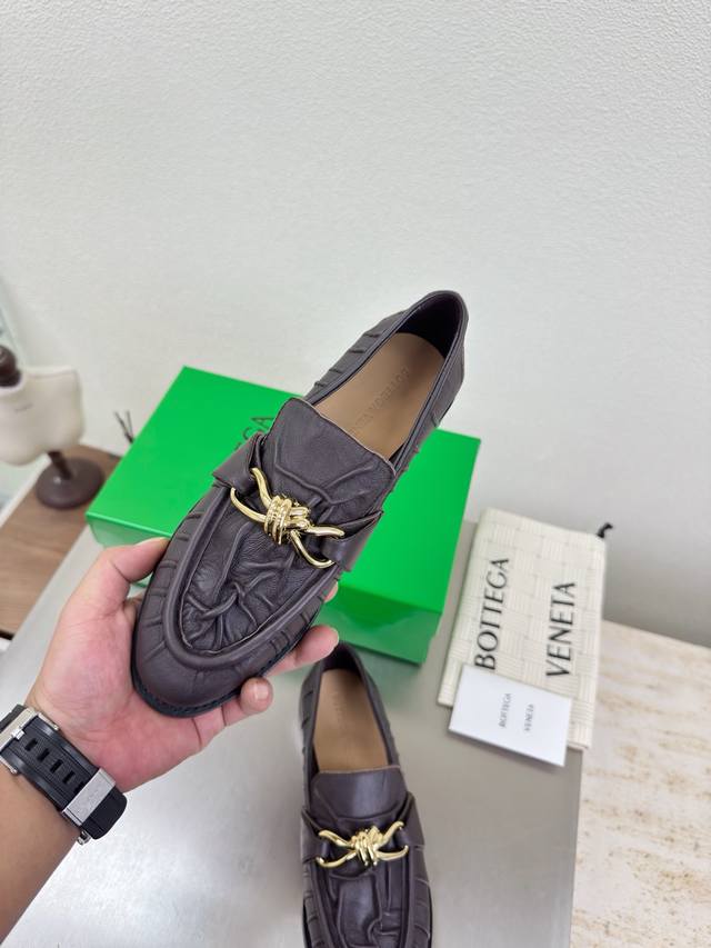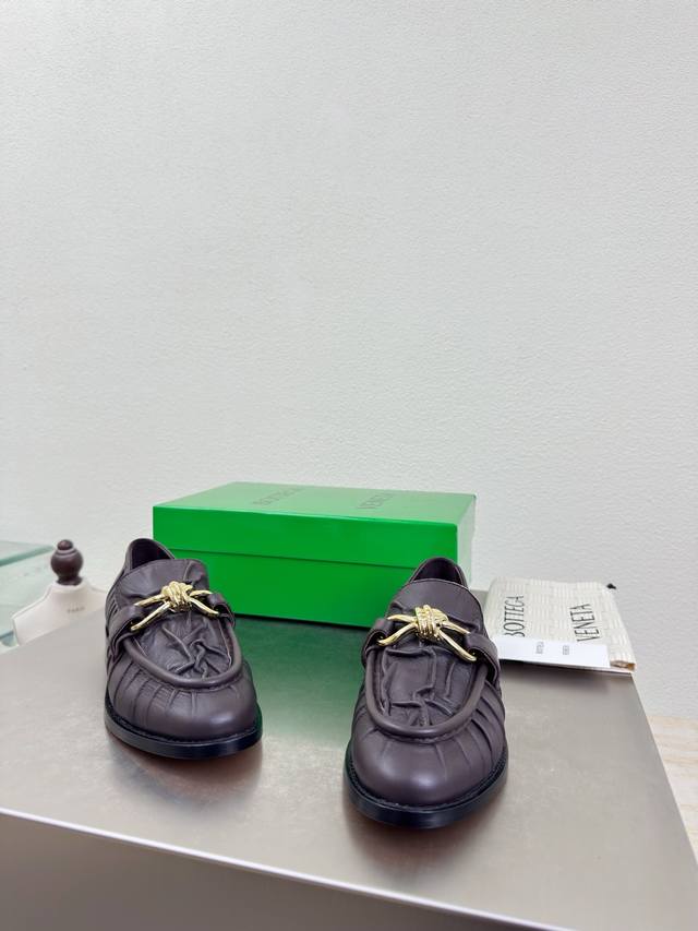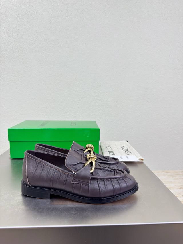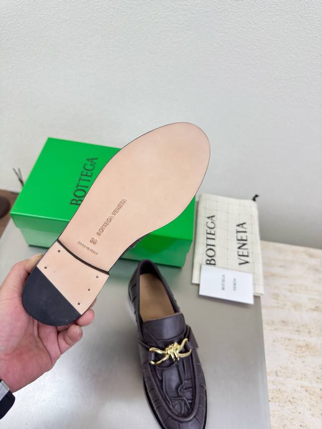 工厂p价p 顶级高端版本 代购品质 原版开发 Bottega Veneta2025Ss新品爆款夏季Astaire 金属扣女士乐福鞋。Bv新款金属扣质感纽结抢手大爆款女士单鞋,Ins&小红书巨多网红明星上身!上脚超性感!真的太美了!有理由刮起时尚大风,让人沦陷的舒适感 厚重而不累脚,意大利进口原版定制面料 对比市场最高版本。这款真皮质感纽结鞋面超有高级感!高级穿着又仙女 简约时髦又有设计感 而且都非常非常好穿,特别是平底走一天也不会累,实用又有质感,特别适合上班一族 原版开模定制颜色鞋型鞋底一摸一样 值得一