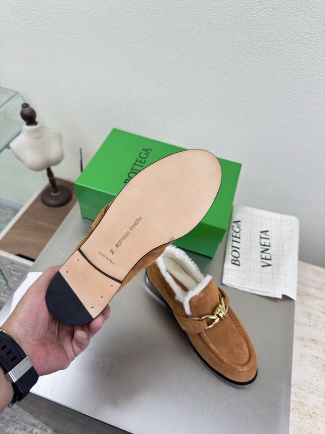 羊羔毛鞋里 金属鎏金扣件装饰 DDD Bottega Venet* DDD 女士Astaire乐福 毛里单鞋 DDD 原版一比一做法 皮扣 DDD 棕色 高丝光牛反绒皮 DDD 内里 羊羔毛 微卷系列 DDD 当今流行的又一趋势 天花板啦 DDD 最全色百搭 DDD 精致平底 包裹面料 同色跟皮 用心设计 绝不马虎 耐穿舒适 DDD 鞋面材质选用同原版 DDD 材质柔软顺滑 DDD 手工缝制后拉链开合设计 性感舒适 DDD 手工缝制工艺 DDD 垫脚内里选用羊皮内里舒适高端 DDD 打钉大底选用原版开模
