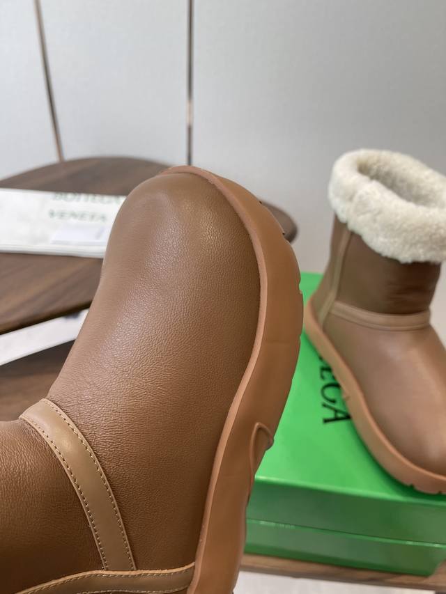 莞产Bottega Venet 全新升级 新款圆头简易雪地靴毛毛短靴! Bv第一款雪地靴作品! Ins上超火 欧美街拍出镜率超高 最高版本发售 圆圆胖胖的鞋型