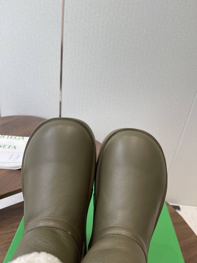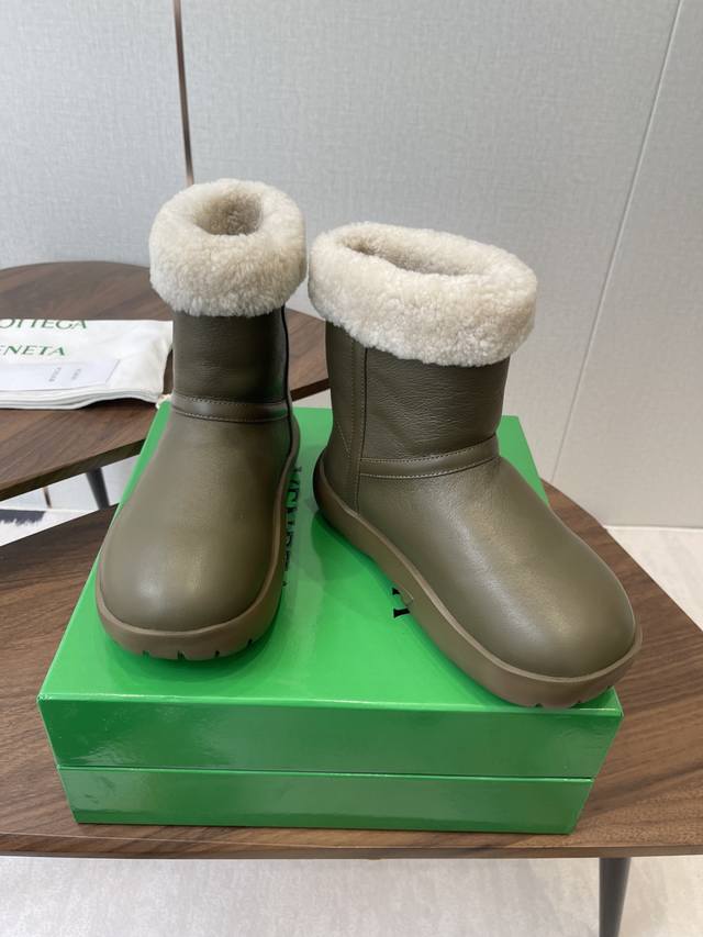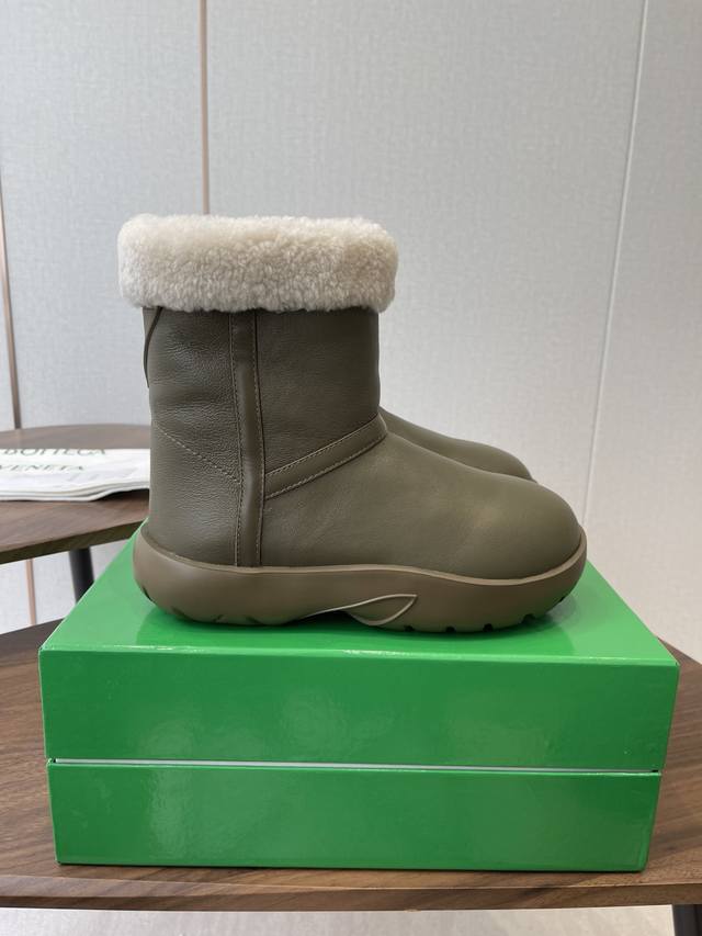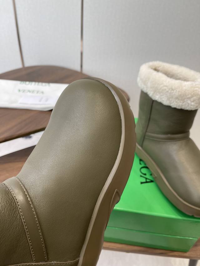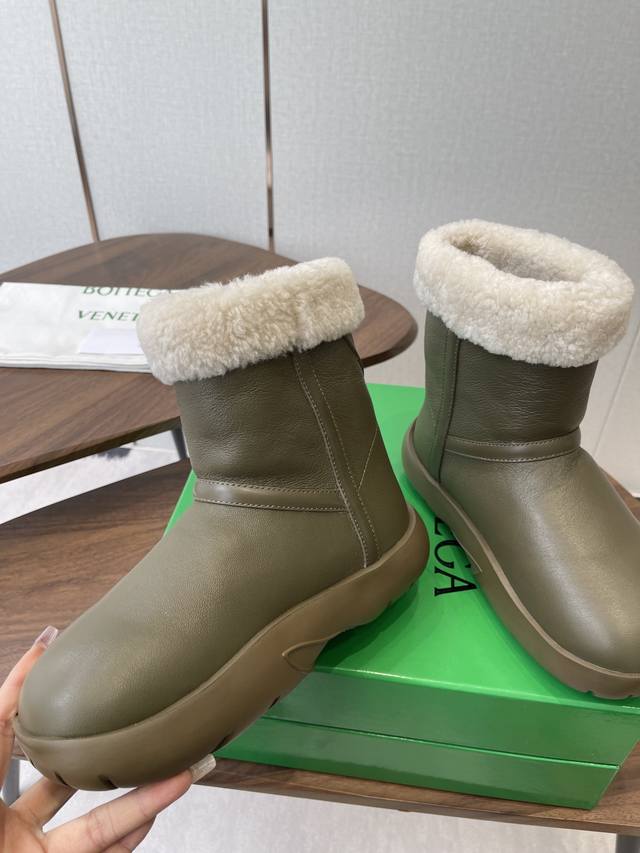 莞产Bottega Venet 全新升级 新款圆头简易雪地靴毛毛短靴! Bv第一款雪地靴作品! Ins上超火 欧美街拍出镜率超高 最高版本发售 圆圆胖胖的鞋型