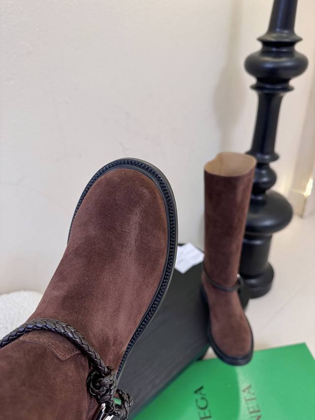长靴 DDD 短靴430 DDD Bottega Veneta Bv一脚蹬时尚 短靴 骑士靴 DDD 太酷了 一眼就爱上,这双绳结靴必须锁死 DDD 经典绳结编织缠绕靴身,搭配标志性三角金属扣,黑银碰撞自带酷飒滤镜,穿上直接化身街头拽姐,气场两米八 DDD 靴型超显腿长,不管是配拖地牛仔裤走随性松弛感,还是搭迷你裙玩辣妹风,甚至配西装裤走职场精英路线,都能完美适配,秋冬穿搭“万能钥匙”就是它 纠结秋冬靴子的姐妹,闭眼冲! DDD 鞋面:小牛皮 内里Bv传统杏色牛皮里、 DDD 大底:橡胶大底 DDD 颜色
