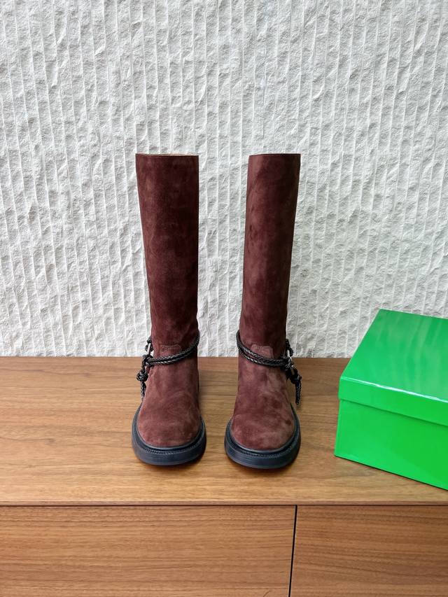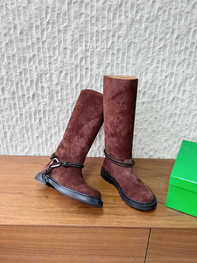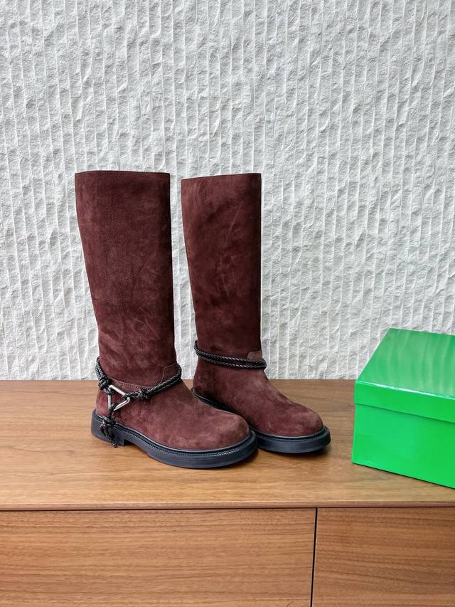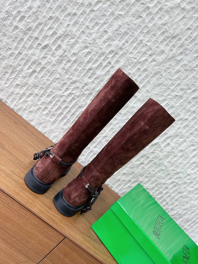 长靴 G266 Bottega Veneta 葆蝶家 25Ss秋冬新款 绳结靴 骑士靴 短靴 DDD 秋冬“战靴”预定,时尚人都在抢淡Bv 女孩看过来!这双绳结靴必须锁死 DDD 经典绳结编织缠绕靴身,搭配标志性三角金属扣,黑银碰撞自带酷飒滤镜,穿上直接化身街头拽姐,气场两米八 DDD 型超显腿长,不管是配拖地走随性松弛感,还是搭迷你裙玩辣妹风,甚至配西装裤走职场精英路线,都能完美适配,秋冬穿搭“万能钥匙”就是它 DDD 纠结秋冬的姐妹,闭眼冲! DDD 鞋面:采用原版进口高丝光反绒皮 DDD 内里垫脚: