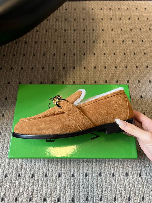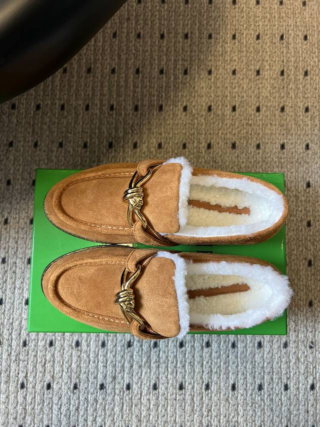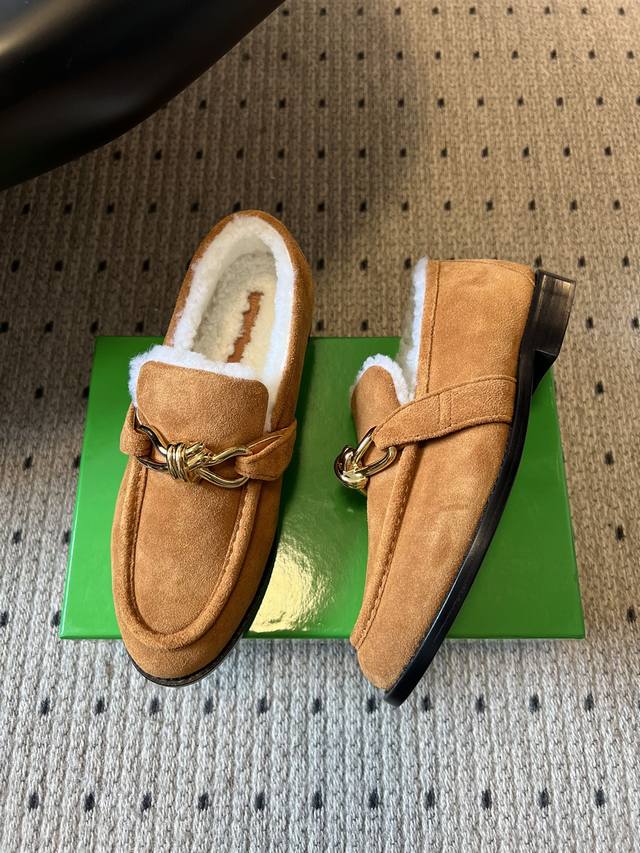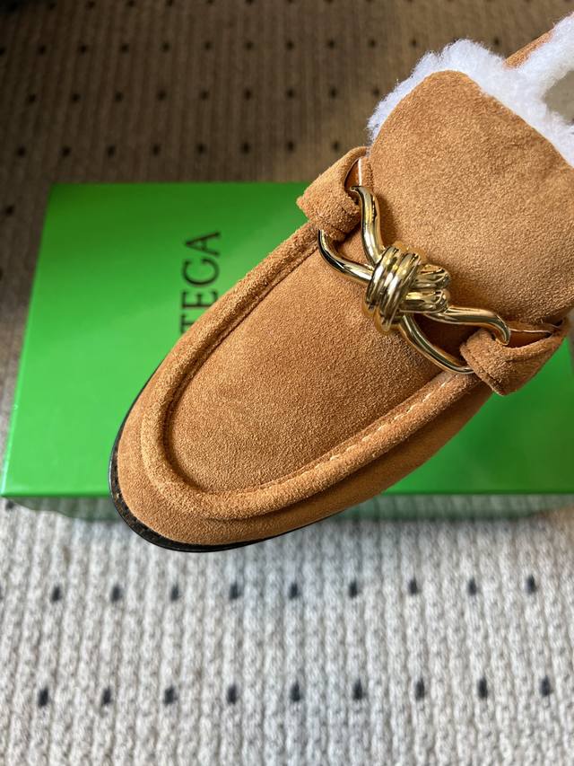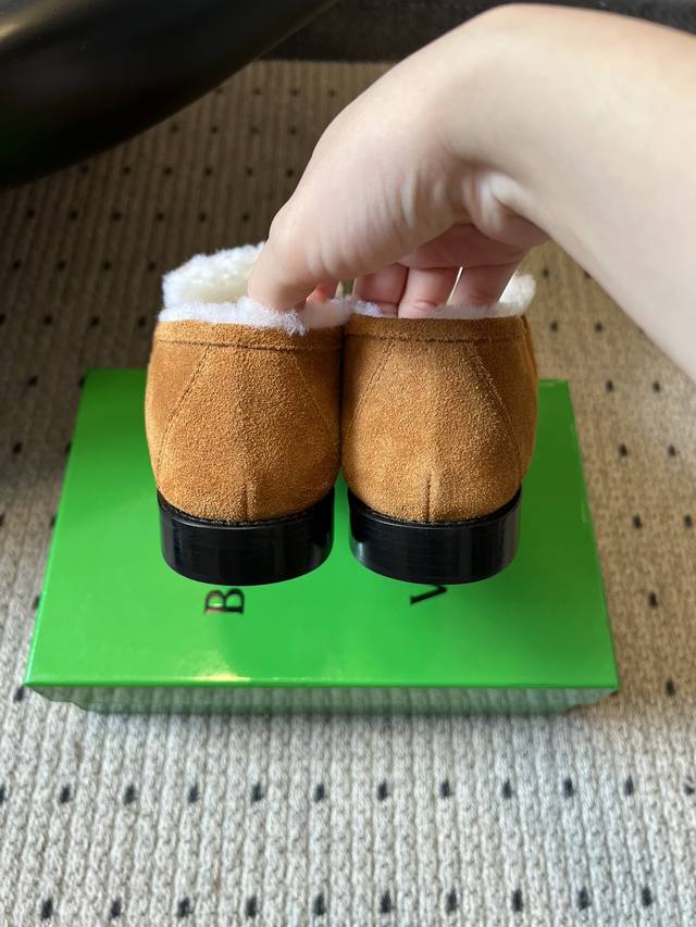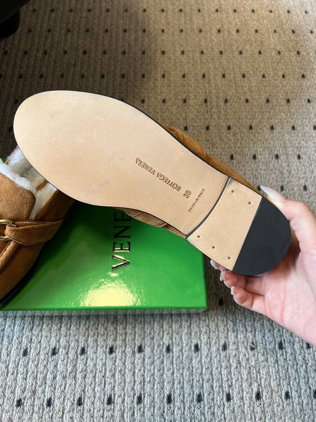 顶级品质 DDD Bottega Venet*秋冬新款平底毛绒半拖单鞋 DDD 核心特点很鲜明,主要集中在保暖性、设计细节、材质和穿搭适配性这几个方面: DDD 鞋身内里是厚绒毛填充,常见羊剪绒,兔毛材质,鞋口也有毛绒包边,能覆盖脚踝位置,适合低温环境穿,避免脚冷。 DDD 一种是金属绳结扣,另一种是皮质蝴蝶结,都是品牌辨识度较高的细节;鞋面多采用绒面革材质,质感偏哑光高级,搭配低帮乐福鞋的经典轮廓。 DDD 鞋面:牛反绒 DDD 内里:羊毛 DDD 大底:真皮大底 DDD 增高:2Cm DDD Size