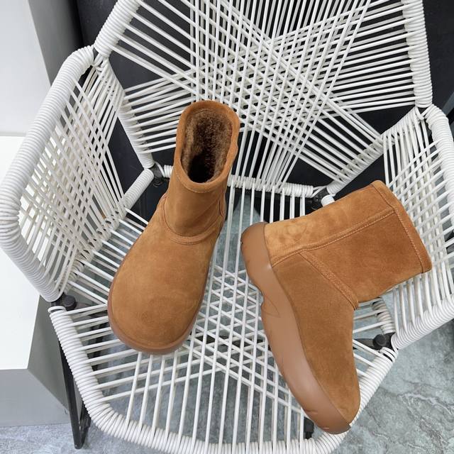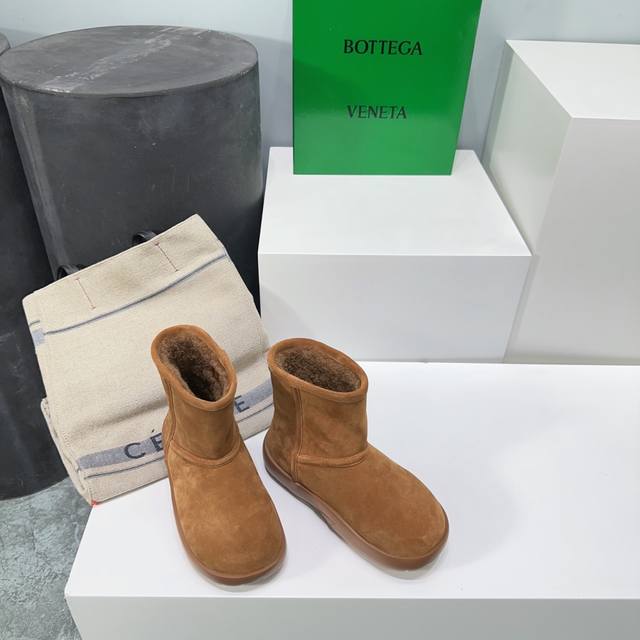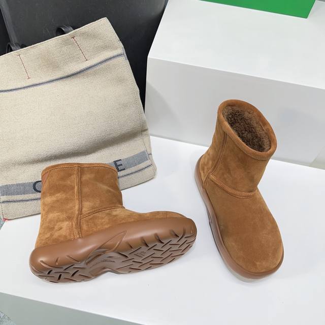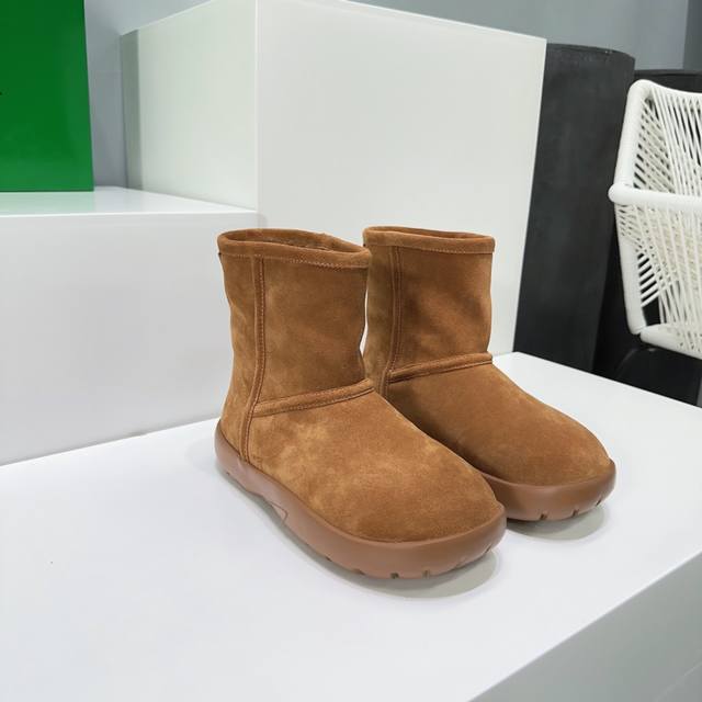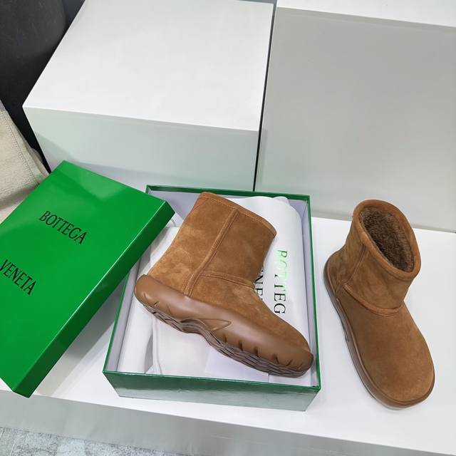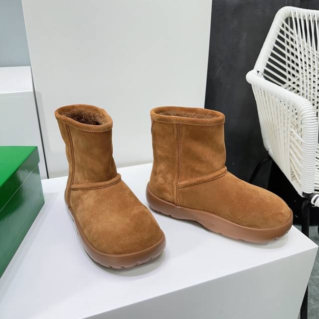 高品质出厂女码 !男码 !情侣款雪地靴顶级品质!Bottega Veneta葆蝶家25Ss秋冬新款圆头简易雪地靴毛毛短靴! Bv第一款雪地靴作品! Ins上超火欧美街拍出镜率超高 最高版本发售圆圆胖胖的鞋型 穿上之后非常的藏肉 原版进口牛反绒麂皮面料 有光泽 超有质感 内里垫脚全进口羊羔毛 羊毛足足2Cm厚 舒适保暖 北方过冬完全 定制原版防滑Eva大底!轻便防滑 增高4Cm 码数:女35-41 40 41定做不退换 :男39-45 45定做不退换 配原版包装