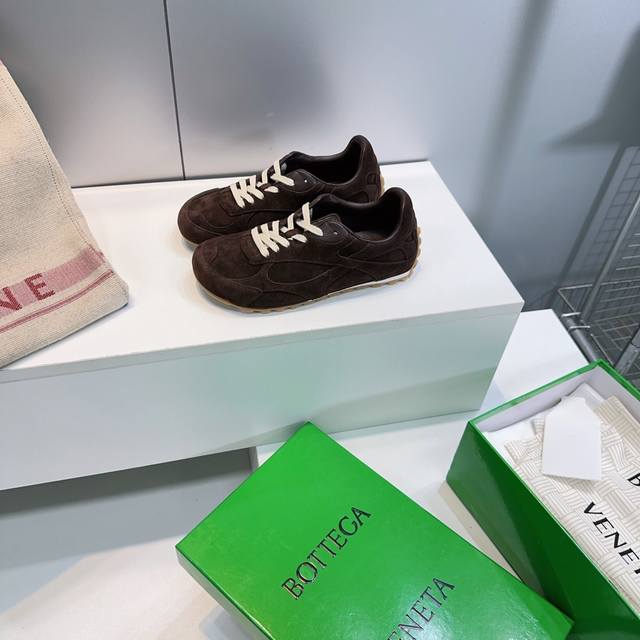 高品质出厂羊麂皮 !顶级品质 薄底款 Bottega Veneta葆蝶家25秋冬新色Bv 反绒运动鞋老爹鞋休闲鞋!原版购入开发!采用原版进口细腻羊京面料,原版一致!工艺复杂! 搭配几何图案设计橡胶外底。 王炸系列 高版本 实际增高很多哦,还是一样显腿细 非常Nice。耐玩耐造,对标对版 套包鞋工艺 认准高版本 大底原版独家开模,选用拼色Tpu大底,材质重量原版一致! 码数:35-41 4041定不退换 配原版包装