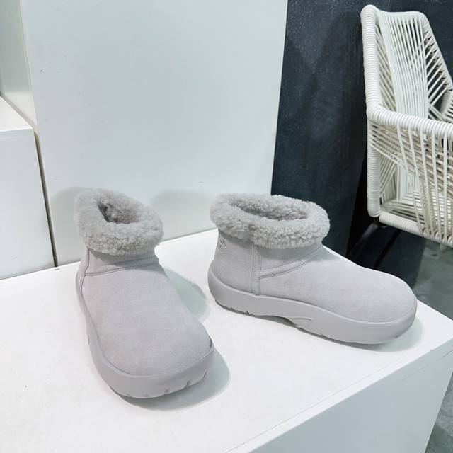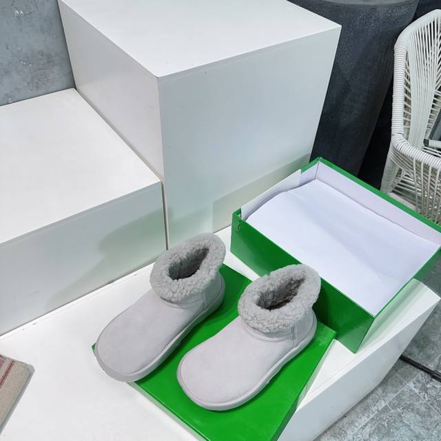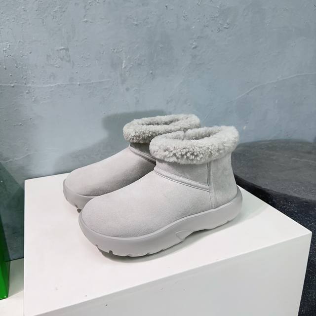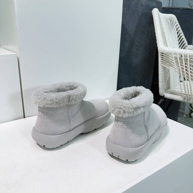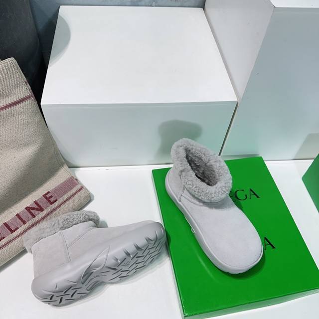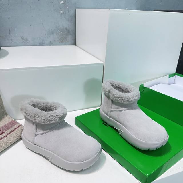 高品质出厂 !顶级品质Bottega Veneta葆蝶家25Ss秋冬新款圆头简易雪地靴毛毛短靴! Bv第一款雪地靴作品! Ins上超火欧美街拍出镜率超高 最高版本发售圆圆胖胖的鞋型 穿上之后非常的藏肉 原版进口牛反绒麂皮面料 有光泽 超有质感 内里垫脚全进口羊羔毛 羊毛足足2Cm厚 舒适保暖 北方过冬完全 定制原版防滑Eva大底!轻便防滑 增高4Cm 码数:女35-41 40 41定做不退换 配原版包装