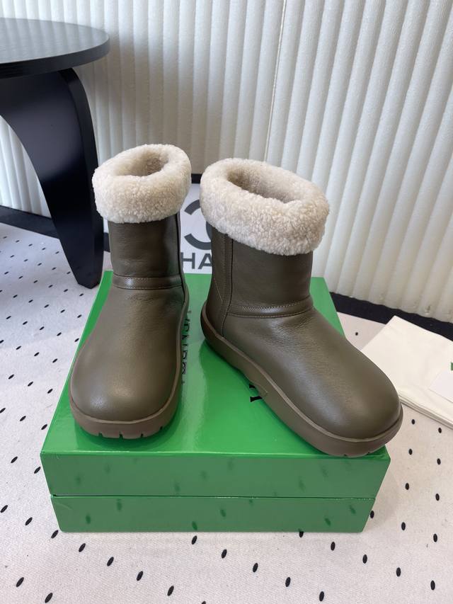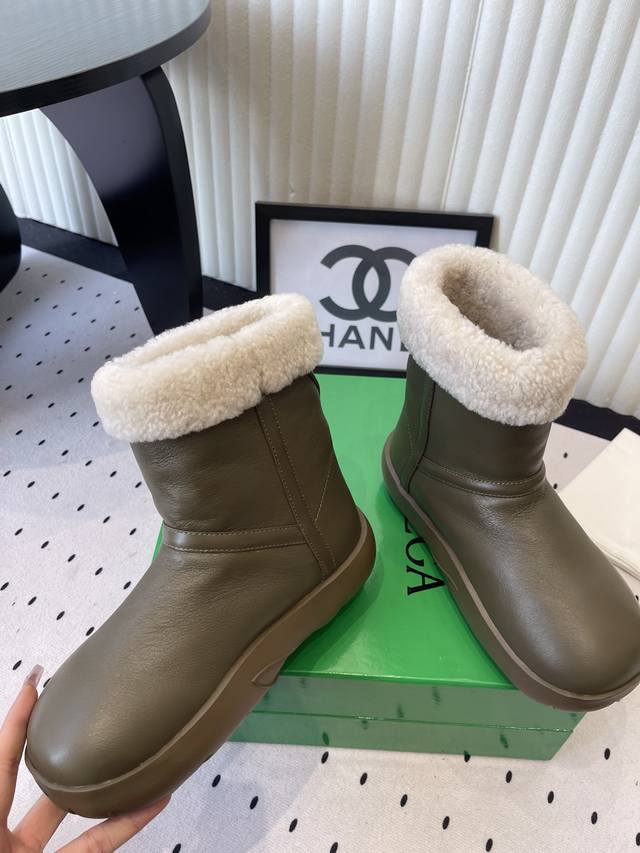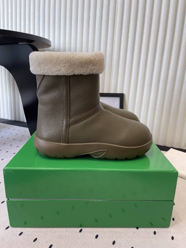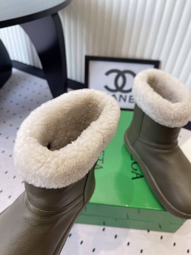 Bottega Venet*秋冬款圆头加绒短靴雪地靴毛毛靴 DDD 靴口和内里有毛绒材质,适合低温天气。外层是皮质面料,防水耐脏,容易清洁。厚底设计,走路时缓冲性好,长时间穿也比较轻松。低筒款式+简约设计,搭配裤子、裙子都适配,颜色也比较日常。 DDD 可搭配束脚运动裤或灯芯绒裤,宽松版型+短靴,日常出街舒适随性。长款针织裙,露出靴口毛绒边,温柔又有秋冬氛围。 DDD 鞋面:羊皮 DDD 内里:羊毛 DDD 大底:原版开模大底 DDD 增高:3.5Cm DDD Size :35-40 DDD