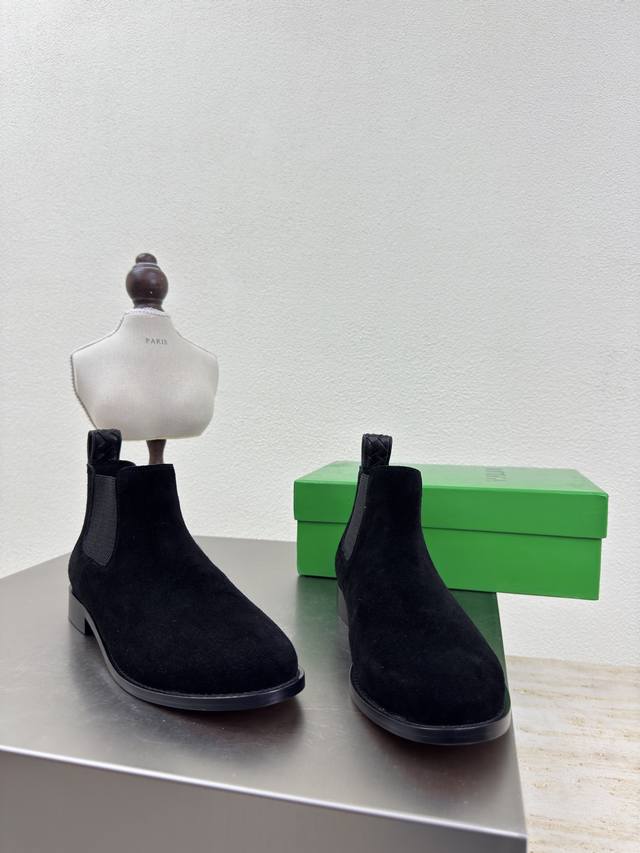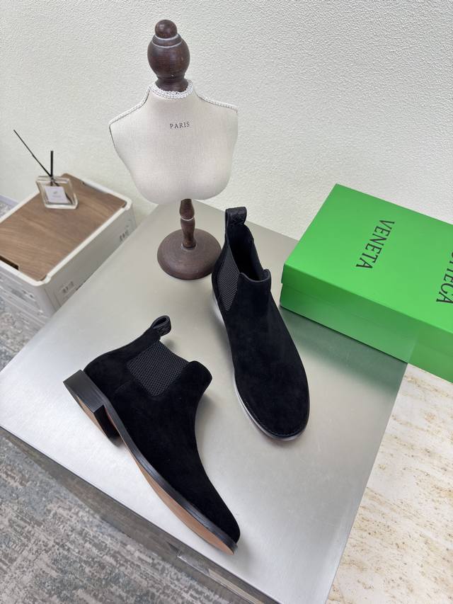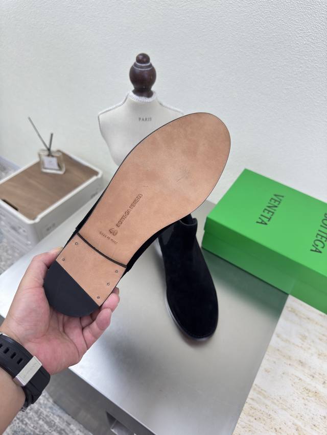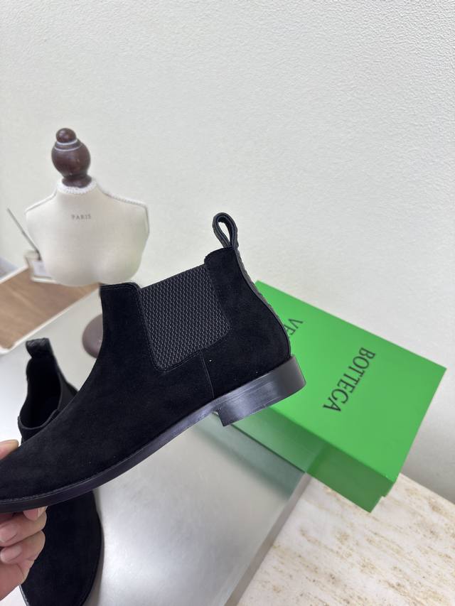 Bottega Venet* 染色真皮大底 DDD 男女款 Astaire 切尔西松紧短靴 DDD 男10 DDD 原版一比一做法 一致五金 DDD 黑色 高丝光牛反绒皮 当今流行的又一趋势 天花板啦 DDD 双色百搭 DDD 精致平底 包裹面料 用心设计 绝不马虎 耐穿舒适 DDD 鞋面材质选用同原版的小牛反绒皮 材质柔软顺滑 DDD 手工缝制后拉链开合设计 性感舒适 DDD 手工缝制工艺 DDD 垫脚内里选用羊皮内里舒适高端 DDD 打钉大底选用原版开模 一致成型大底 DDD 对标对版 DDD 选用原