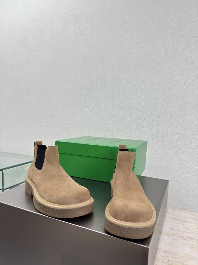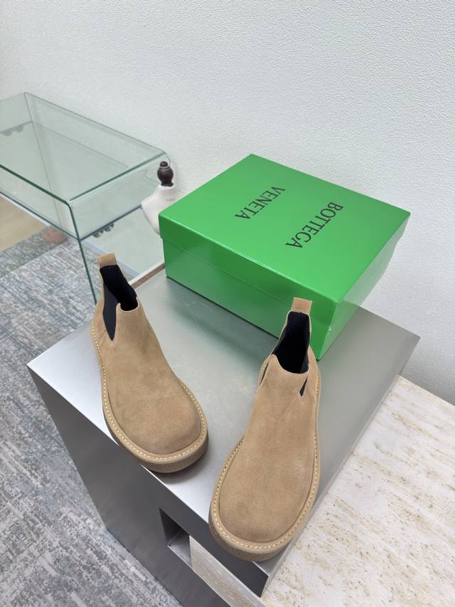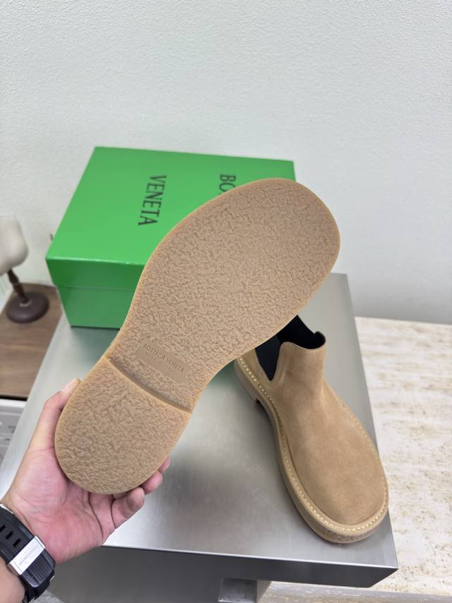 Bottega Venet* DDD 男女款 Astaire 切尔西松紧靴 厚底 DDD 男10 DDD 原版一比一做法 一致五金 DDD 杏色 高丝光牛反绒皮 当今流行的又一趋势 天花板啦 DDD 双色百搭 DDD 精致平底 包裹面料 用心设计 绝不马虎 耐穿舒适 DDD 鞋面材质选用同原版的小牛反绒皮 材质柔软顺滑 DDD 手工缝制后拉链开合设计 性感舒适 DDD 手工缝制工艺 DDD 垫脚内里选用羊皮内里舒适高端 DDD 打钉大底选用原版开模 一致成型大底 DDD 对标对版 DDD 选用原版包装 D