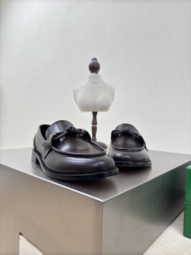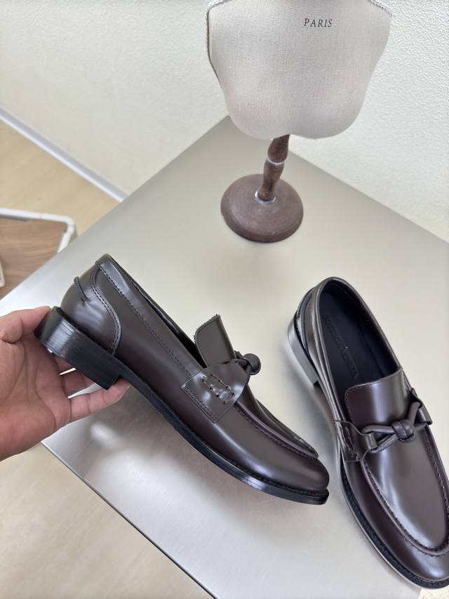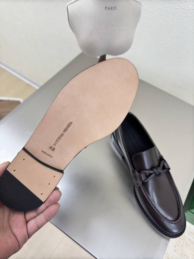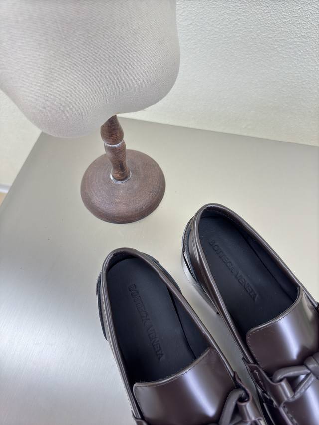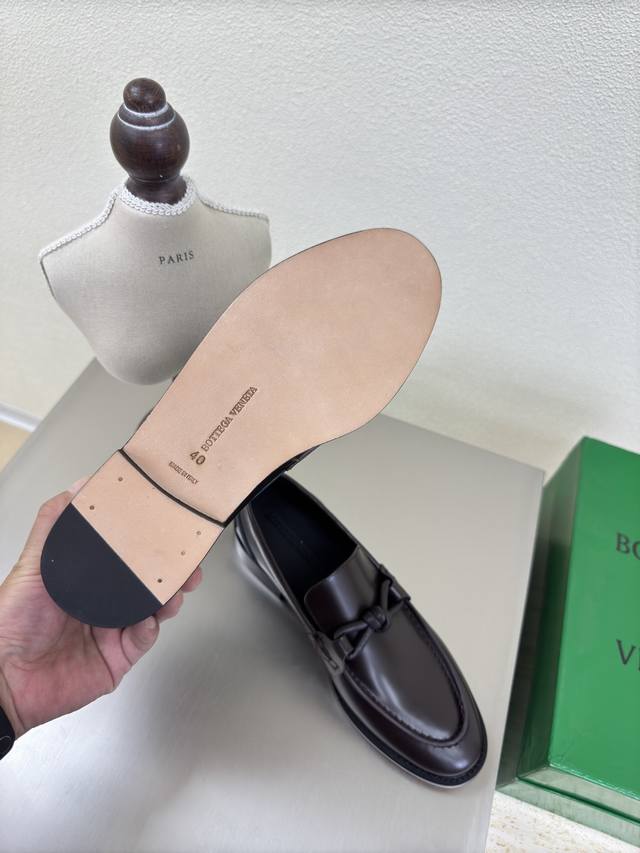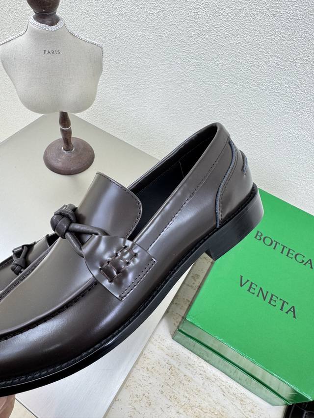 Bottega Venet* 真皮 结绳配饰 男女款 Astaire乐福鞋 巧克力色 开边珠牛皮 老钱风 乐福鞋 原版一比一做法 一致五金 当今流行的又一趋势 天花板啦双色 色百搭 精致平底 包裹面料 同色跟皮 用心设计 绝不马虎 耐穿舒适 鞋面材质选用同原版的开边珠 小牛皮 材质柔软顺滑 手工缝制后拉链开合设计 性感舒适 手工缝制工艺 垫脚内里选用羊皮内里舒适高端 打钉大底选用原版开模 一致真皮大底 对标对版 选用原版包装 鞋子布袋采用印胶Logo工艺 市场最高端 采用热熔胶定型鞋头 后跟 易回弹不变形