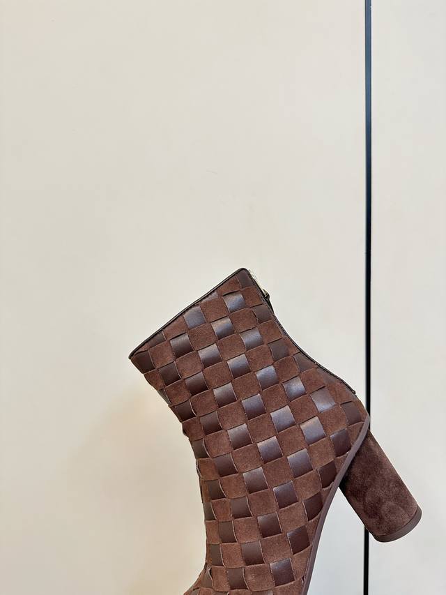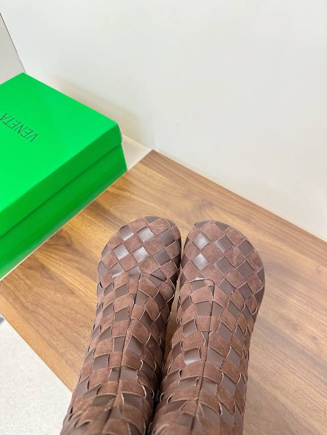 Bottega Veneta Bv Atomic系列编织高跟短靴 这款圆头 宽扁的流线头型 当今流行的又一趋势 天花板啦 手工编织而成 精致圆形跟 包裹面料 同