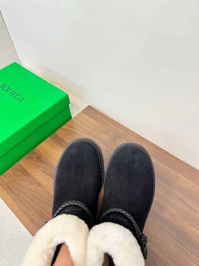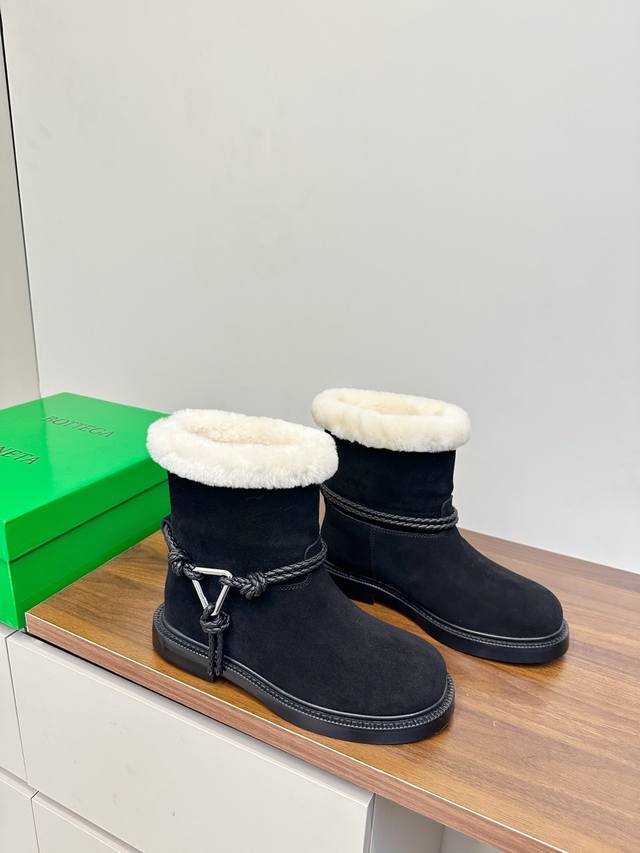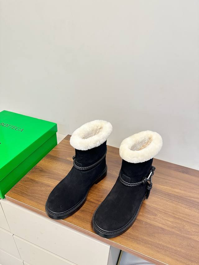 Bottega Veneta James 羊羔毛短靴 骑士靴 Bv James短靴,采用打蜡小牛皮 羊羔毛超柔软,秋冬穿超暖! 鞋面编织绳+三角金属扣,辨识度满