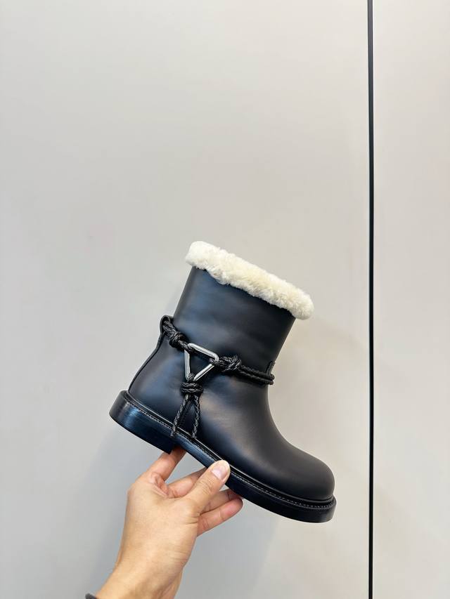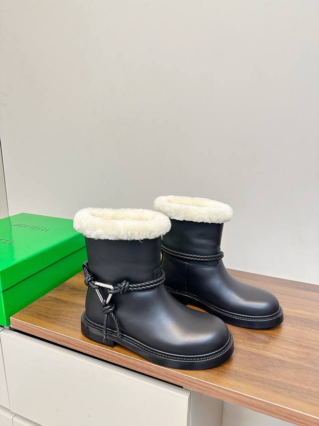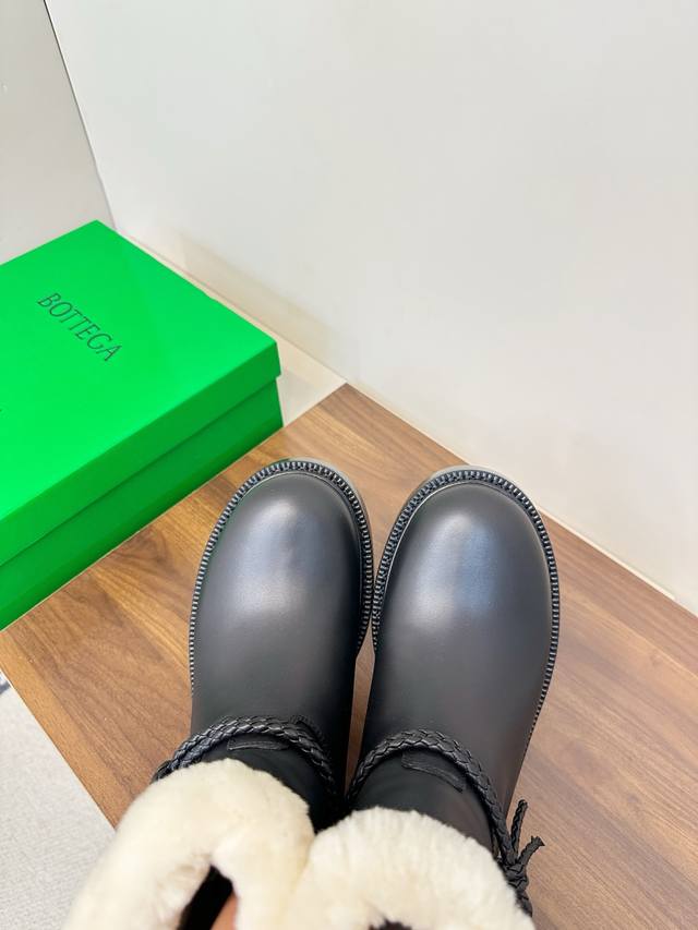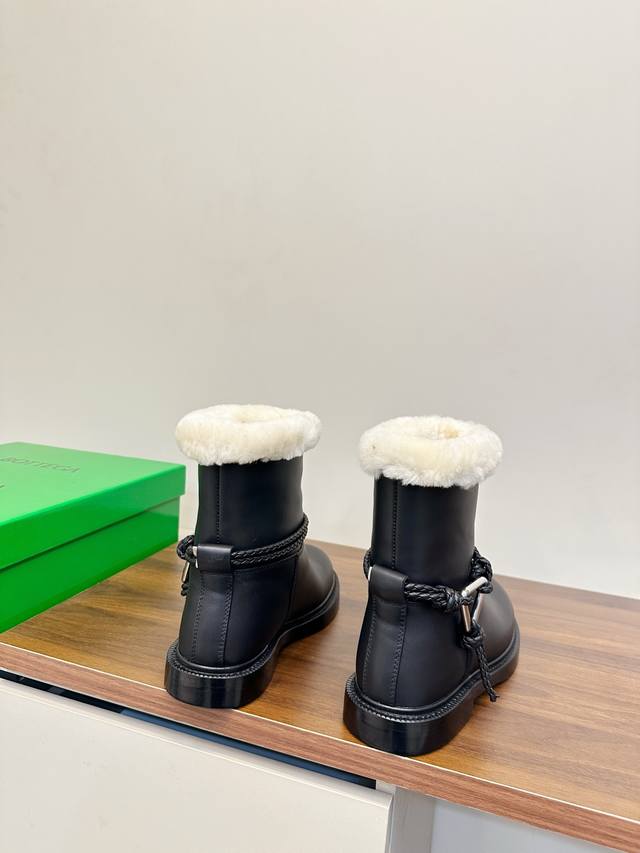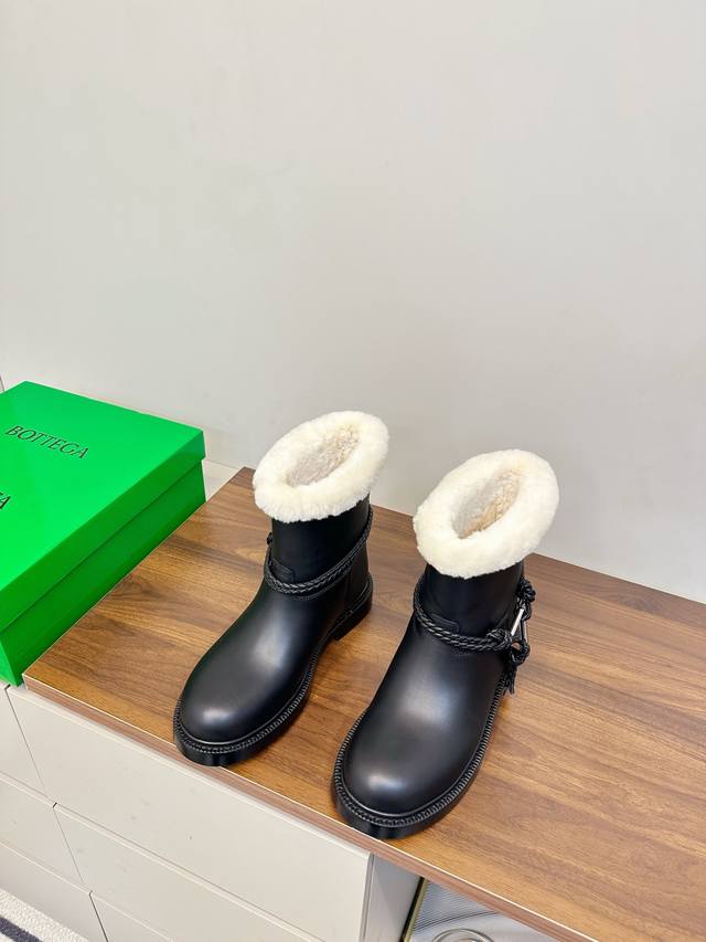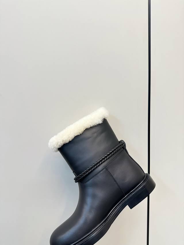 Bottega Veneta James 羊羔毛短靴 骑士靴 Bv James短靴,采用打蜡小牛皮 羊羔毛超柔软,秋冬穿超暖! 鞋面编织绳+三角金属扣,辨识度满