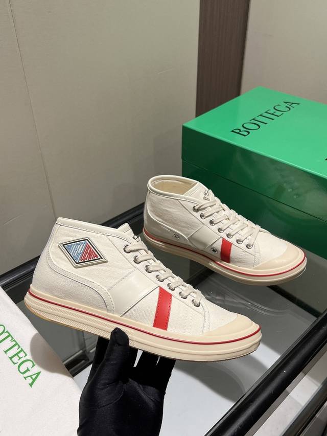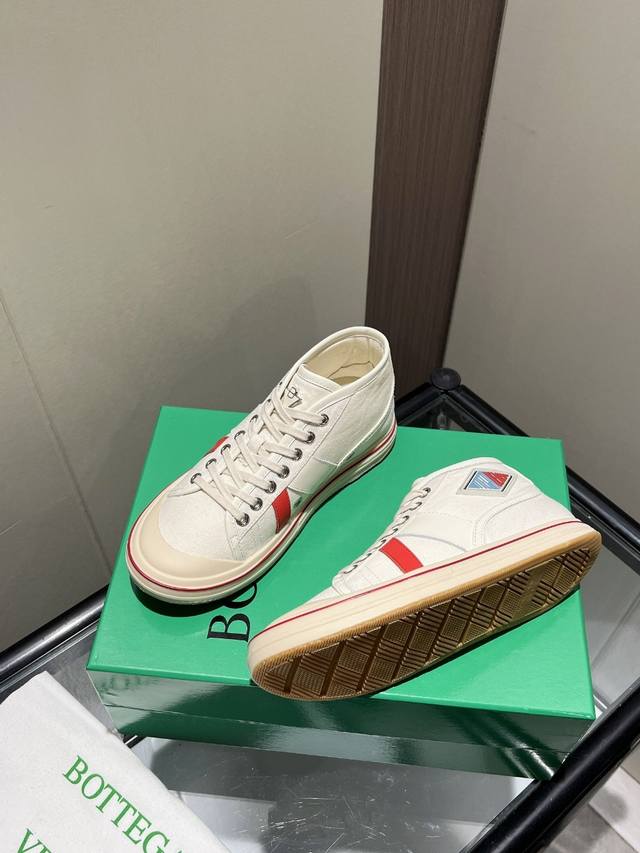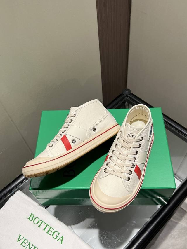 工厂P价 女装女鞋 运动原单 Bottega Veneta 葆蝶家Bv最新款Eliot系列 复古 篮球鞋 休闲 运动 帆布鞋 上市即封神 按原版1:1的复制, 原版材料, 原版色系,以复古篮球运动鞋为灵感,色彩组合彰显青春活力,完美诠释了青春与童心的主题。其细节处也颇为讲究,夏季帆布带来出色的耐用性与舒适度,小牛皮饰边、橡胶鞋头以及手绘复古红线等设计,复古感满满,圆头与凸鞋底又增添了现代感,适配各种风格 轻松拿捏时髦氛围感 上脚即焦点 可以做情侣鞋穿着哦 每只鞋更具品味与态度喔 面料: 原版定制高密度帆布