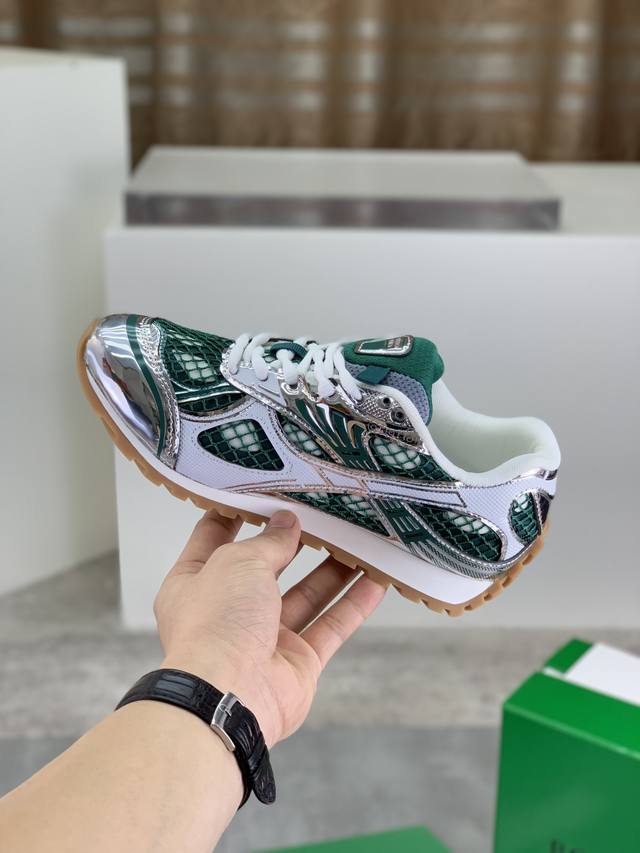 调工厂p价 男装男鞋 运动原单 Bottega Veneta全新Orbit 运动鞋情侣款 DDD 该鞋款灵感取材自90 年代运动鞋的鞋型轮廓,其特色在于网状纹理的应用以及交叉覆盖的异材质鞋面,无疑是向品牌著名的 Intrecciato 图样致敬 DDD 此外,鞋底设计也较为纤细优雅,外底延伸至鞋跟后侧,将运动元素和时尚灵感巧妙结合 DDD 采用轻质科技金属皮革拼接网布面料 DDD 女款 35-40 40定做 DDD 男款 39-45 45 46 47定做 DDD 配原版包装 DDD