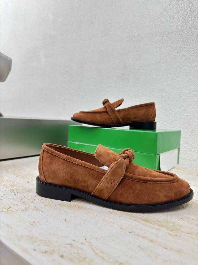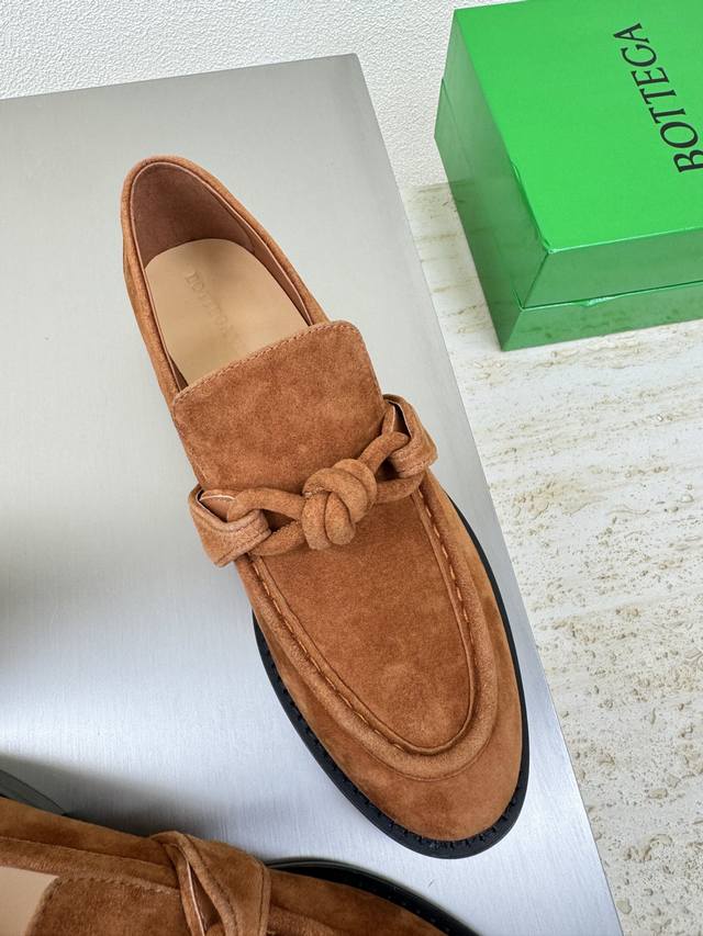 Bottega Venet* 真皮 结绳配饰 女士Astaire乐福鞋 麂皮 老钱风 乐福鞋 原版一比一做法 一致五金 棕色 当今流行的又一趋势 天花板啦 3色百搭 精致平底 包裹面料 同色跟皮 用心设计 绝不马虎 耐穿舒适 鞋面材质选用同原版的小牛皮 材质柔软顺滑 手工缝制后拉链开合设计 性感舒适 手工缝制工艺 垫脚内里选用羊皮内里舒适高端 打钉大底选用原版开模 一致真皮大底 对标对版 选用原版包装 鞋子布袋采用印胶Logo工艺 市场最高端 采用热熔胶定型鞋头 后跟 易回弹不变形 高跟系列 包面料工艺