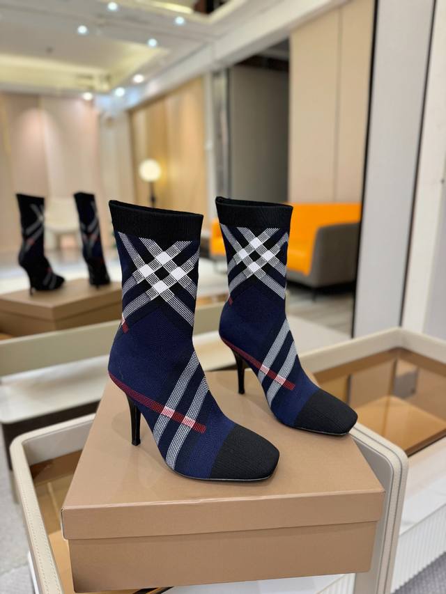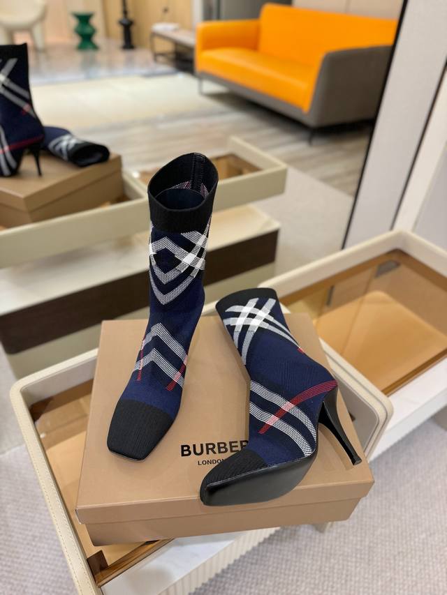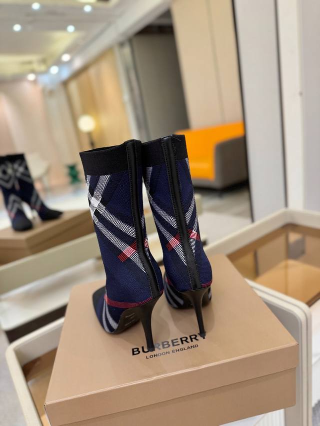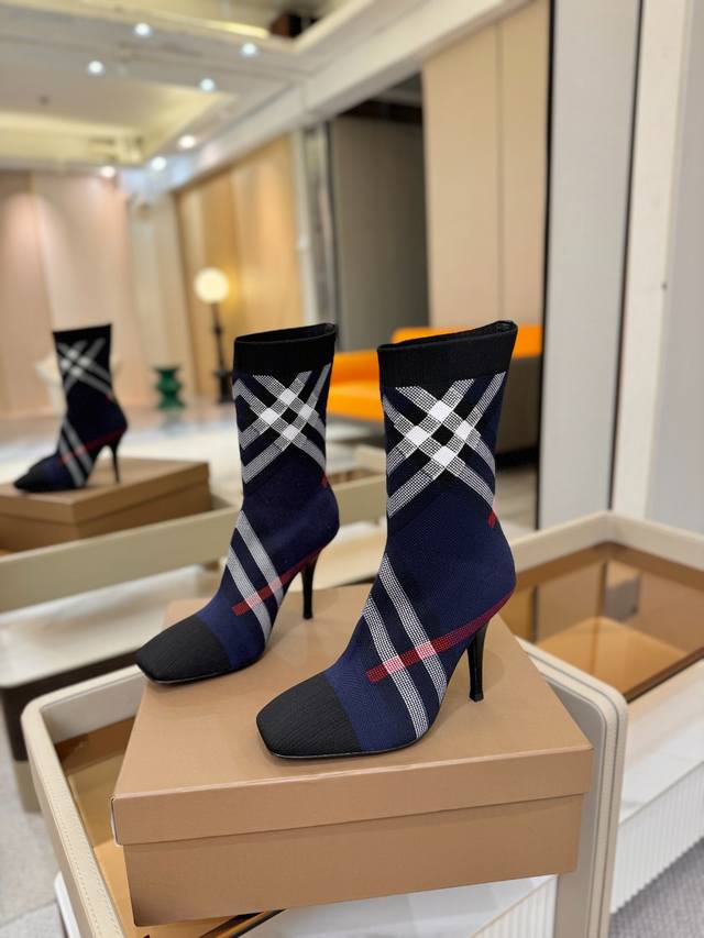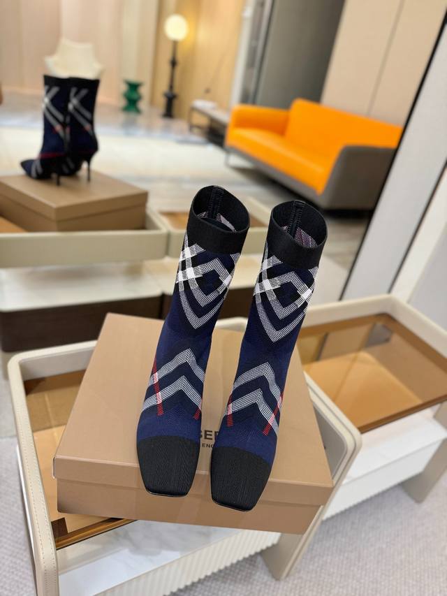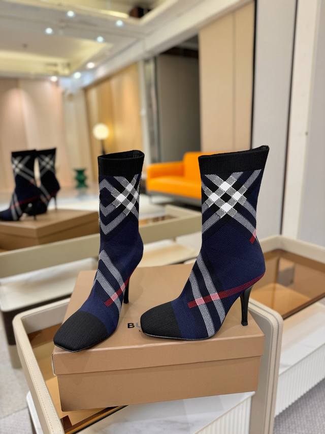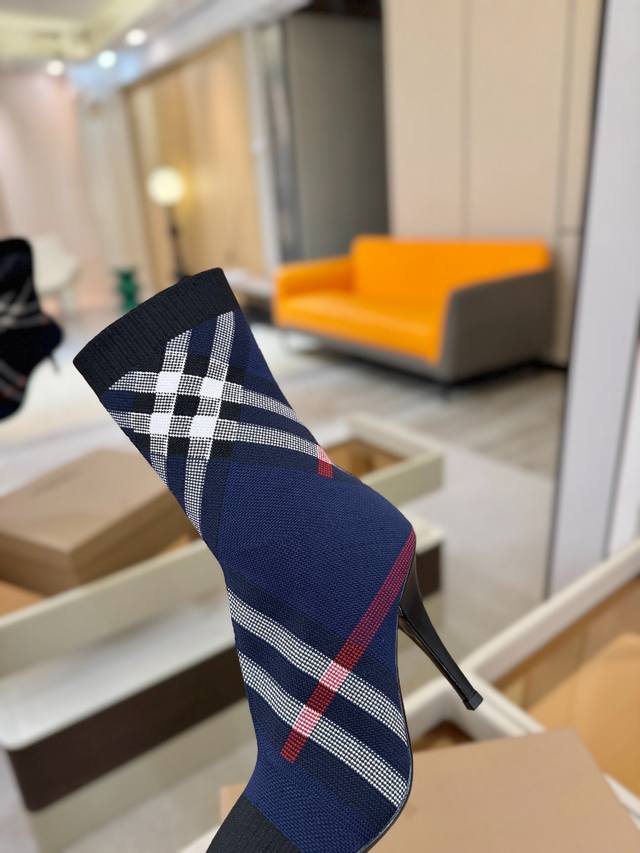 / 价格p: 博柏利 最新独家推出方头细跟格纹弹力针织袜长靴 Burberry博柏利英国奢侈品牌,典藏米色,原版1:1复制,贴身弹力针织式及膝靴,设计圆形靴头粗跟,