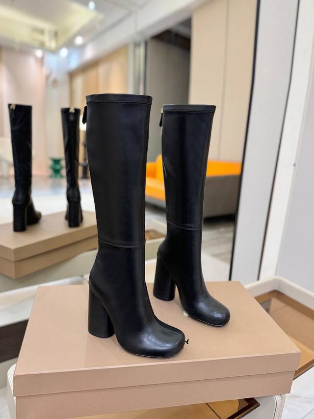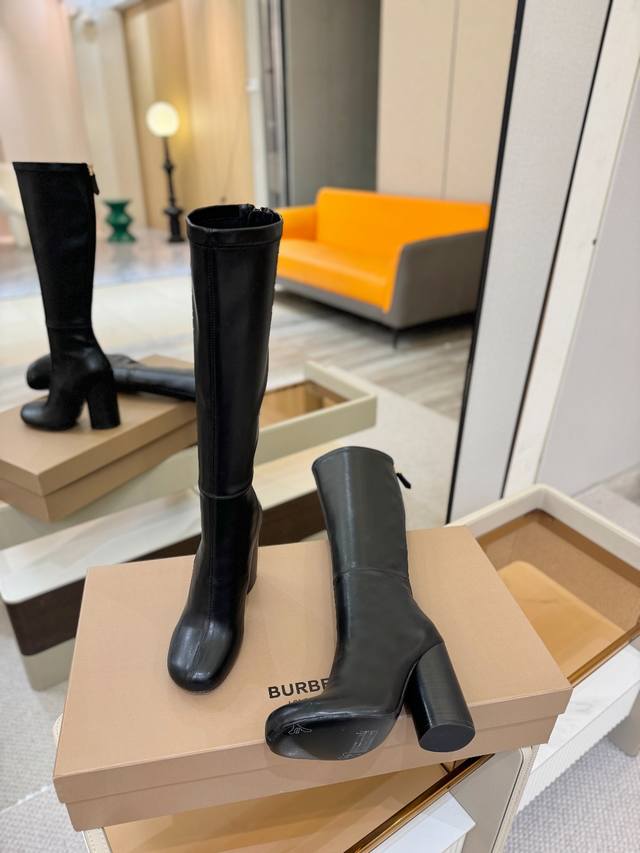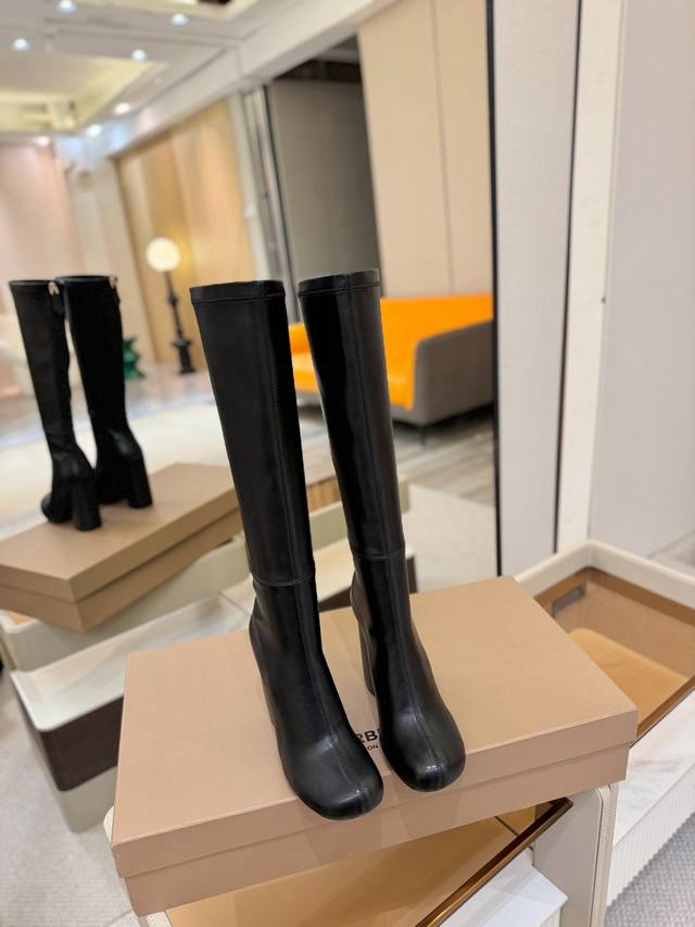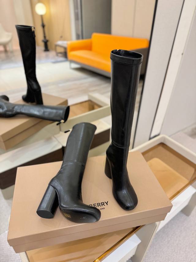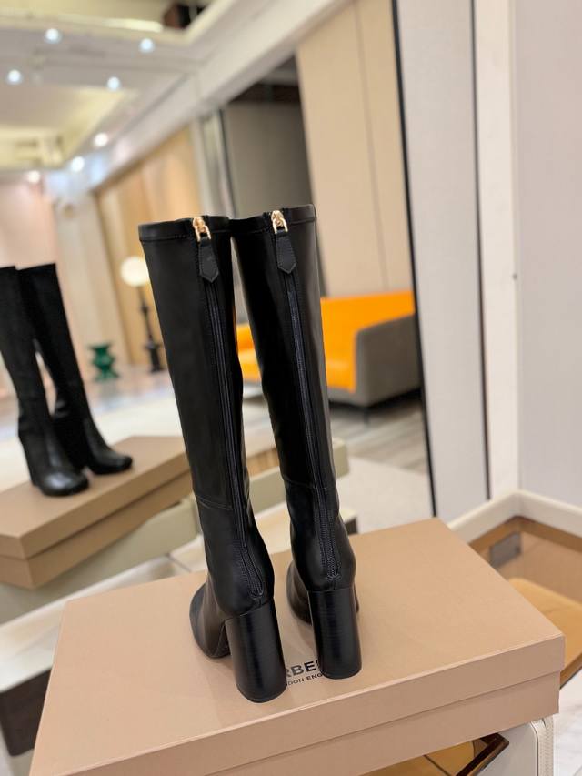 / 价格p: 独家推出圆头徽标粗跟弹力长靴 Burberry博柏利英国奢侈品牌,原版1:1复制,贴身弹力及膝靴,设计圆形靴头粗跟,装饰品牌标志图案。 靴面:进口意大