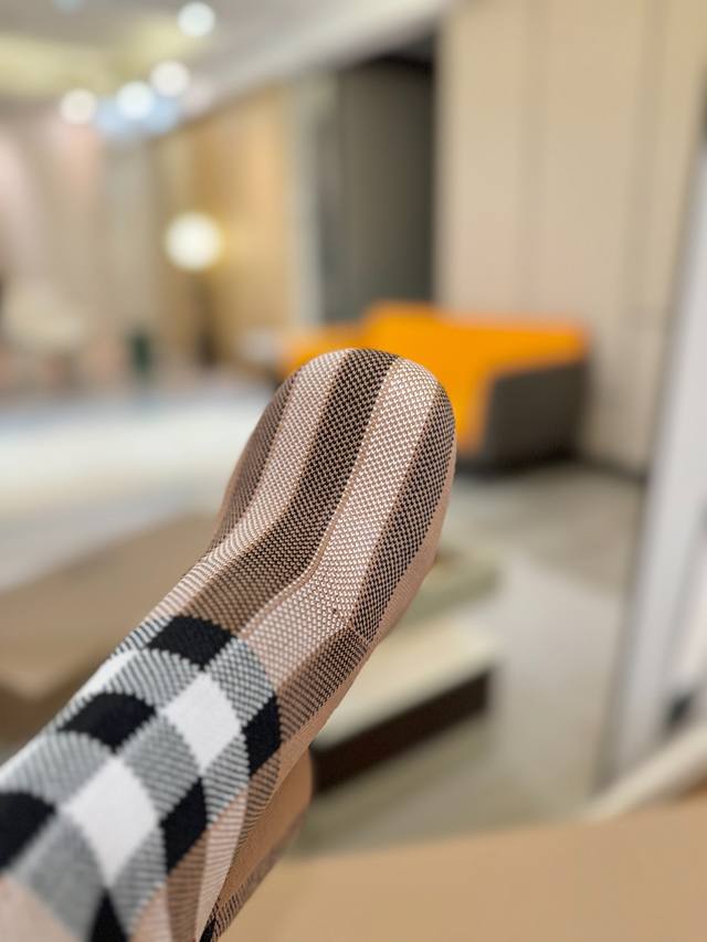 出厂价P 博柏利 独家 推出方头细跟格纹弹力针织袜长靴...