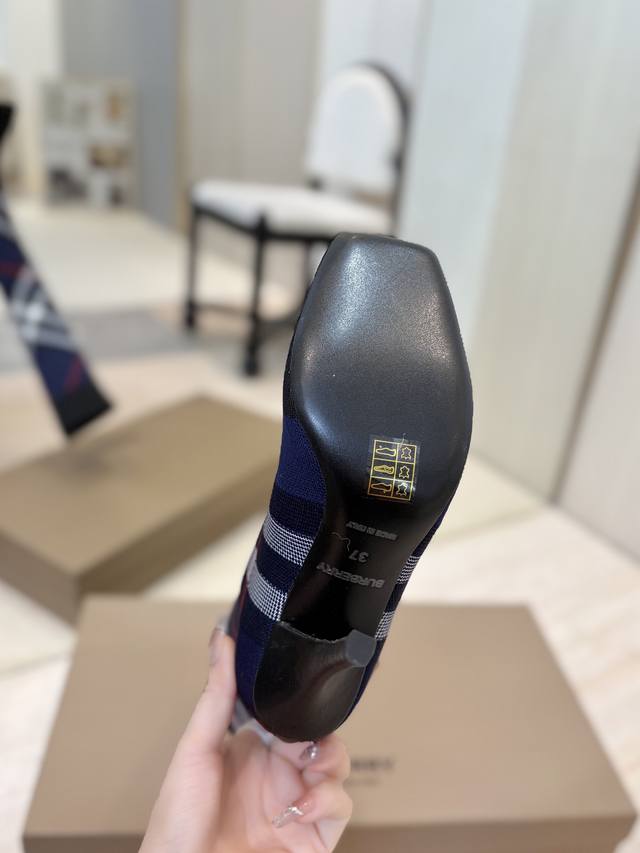 出厂价P 博柏利 独家 推出方头细跟格纹弹力针织袜长靴...