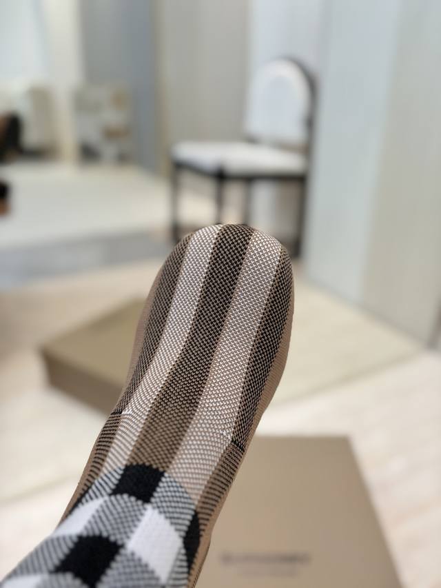 出厂价p 博柏利 独家 推出方头细跟格纹弹力针织袜长靴...